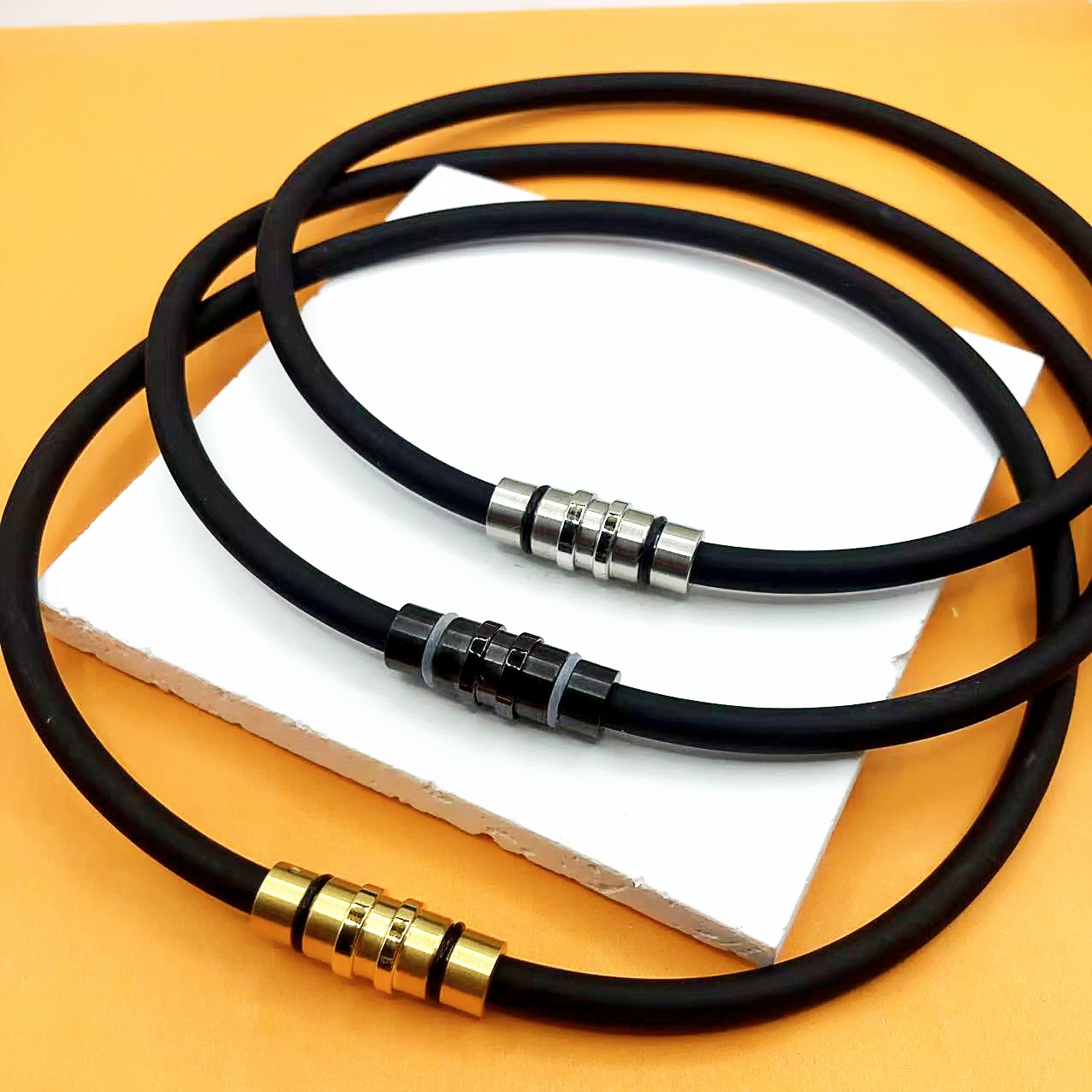 跨境新款磁扣负离子硅胶项圈时尚项链男女运动颈环佛牌吊绳佛牌链