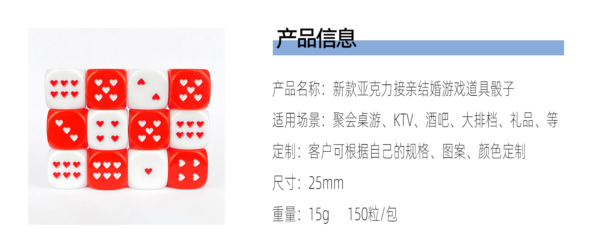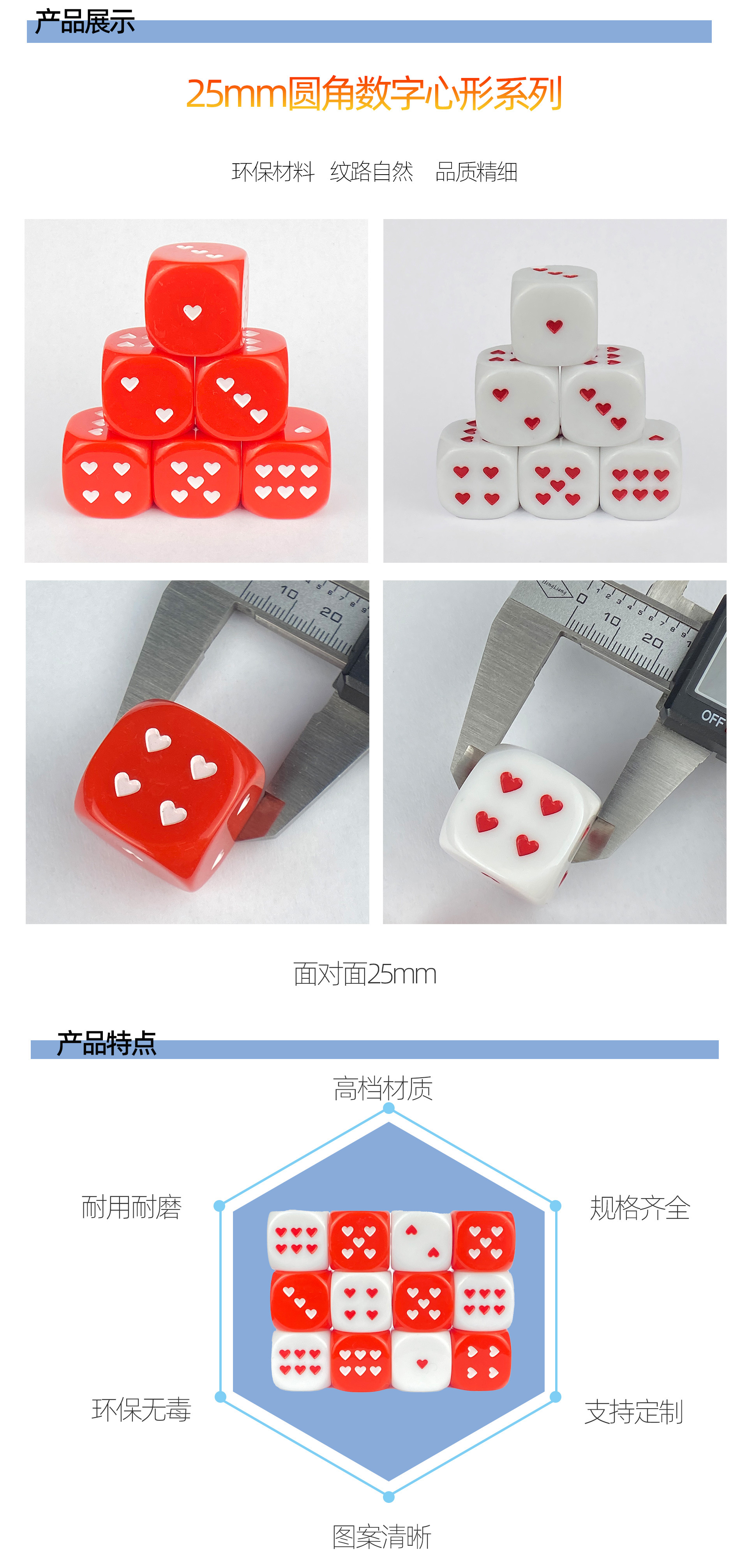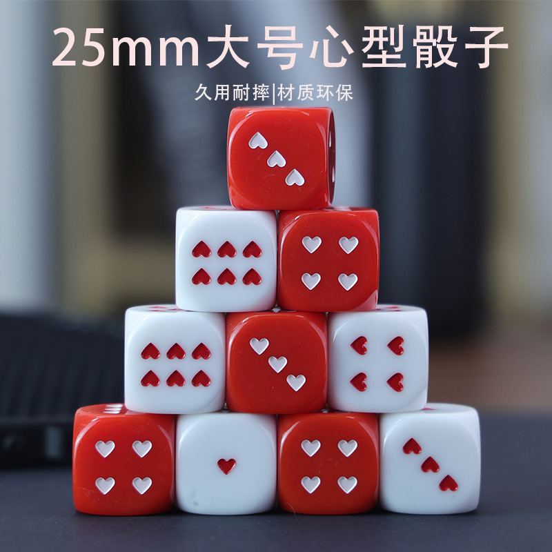 卸売りアクリル材質ハート型サイコロ25mm図案創意サイコロ結婚ゲーム道具色子