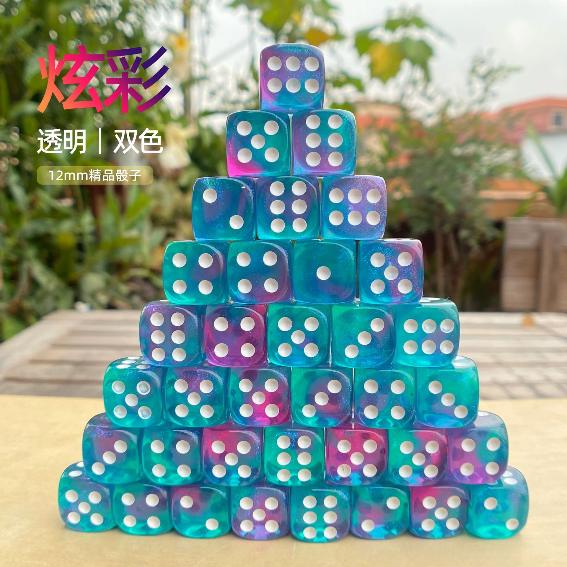 サイコロ12mm 6面のカラフルな透明な2色の角D6サイコロのクロスボーダーのテーブルゲームの教育部品のサイコロ