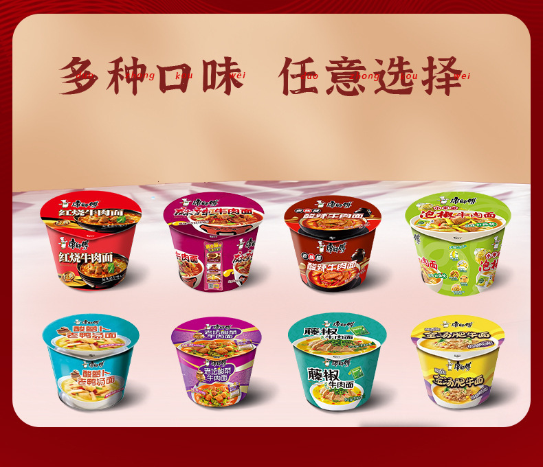 【卸売り】康師傅の牛肉のインスタントラーメンを焼くのが楽しい桶に辛い酸っぱい野菜を入れて、唐辛子を泡立てて、多味の箱を詰めます。