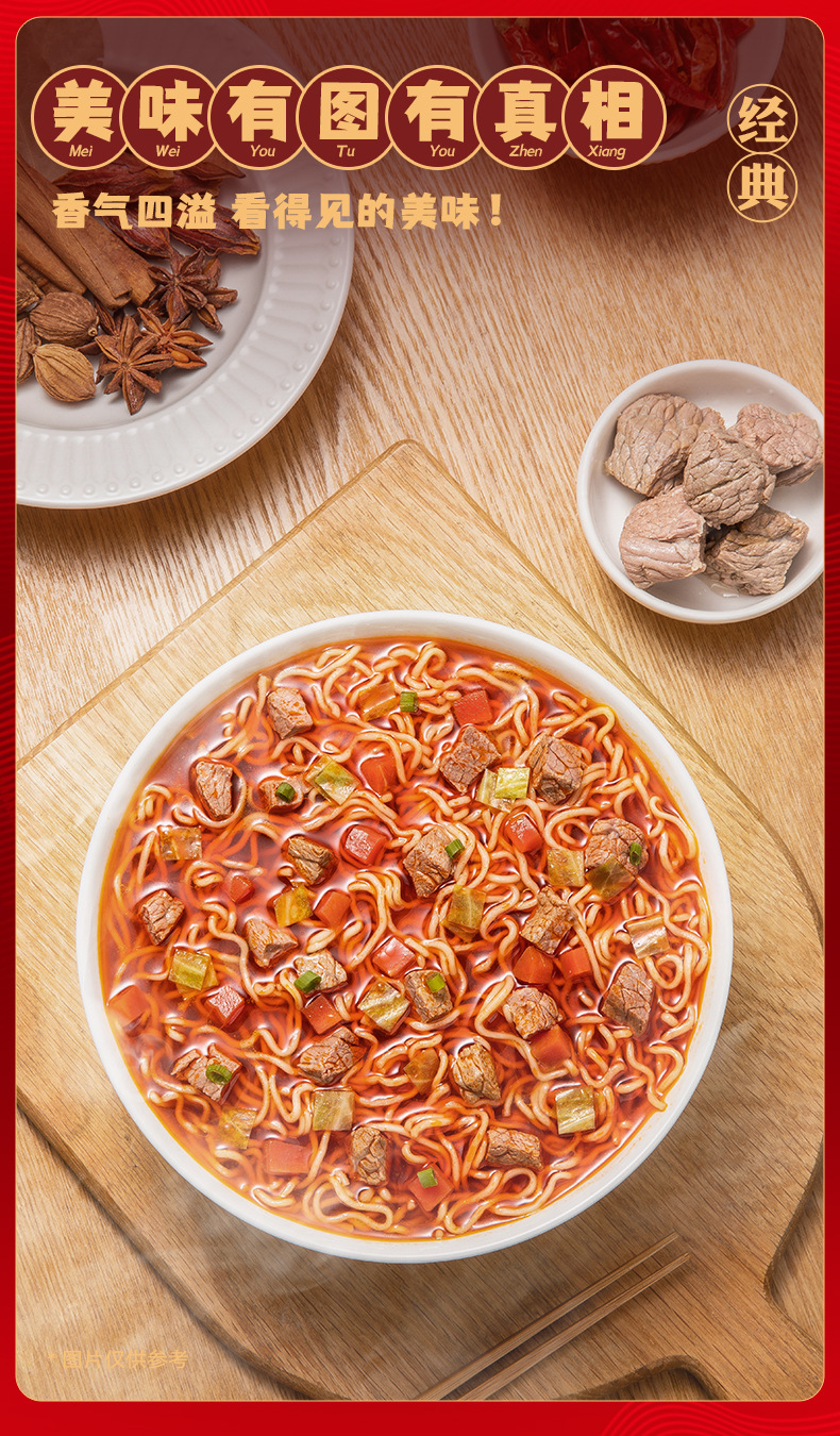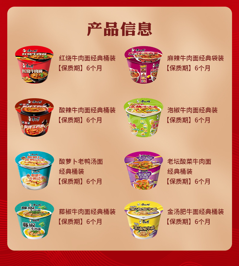 康師傅のインスタントラーメンの経典の赤焼の牛肉の麺の袋は24袋の箱に入って泡の麺の箱に入って卸売りします。