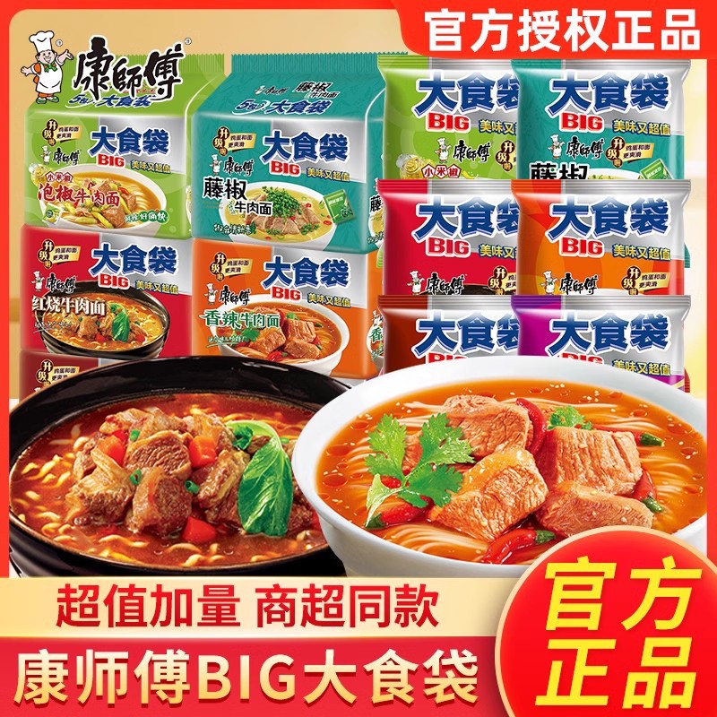 康師傅インスタントラーメンBIG大食袋赤焼麻辣牛肉麺金湯肥牛酸菜袋入りカップラーメン卸売り