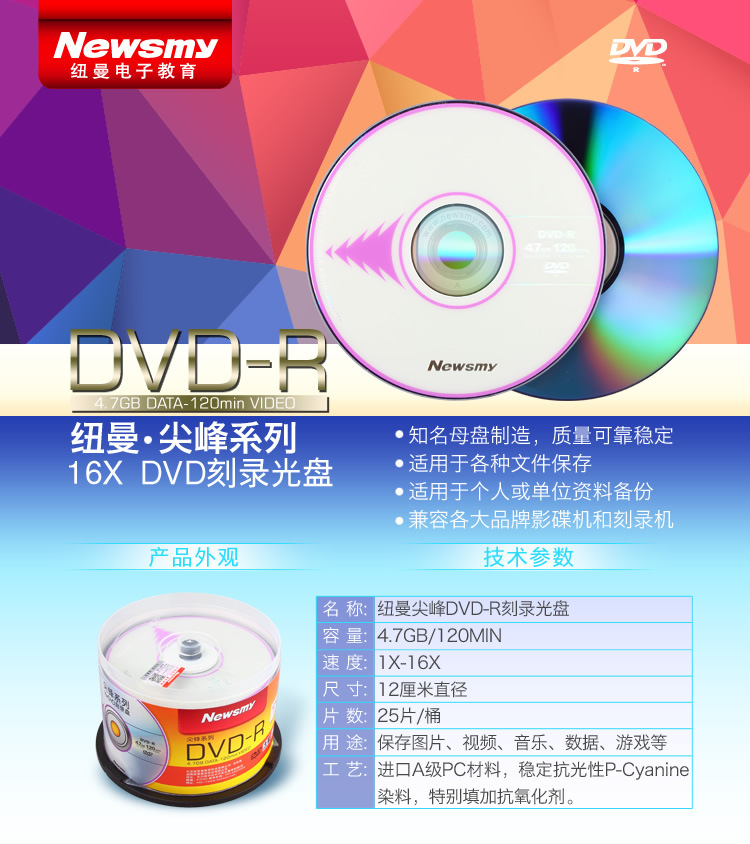 ニューマン (Newsmy) スパイクシリーズDVD-R16速4.7gブランクディスク/ディスク/書き込みディスク