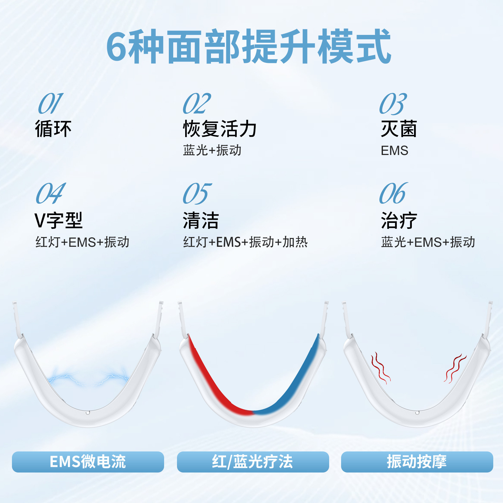 クロスボーダー爆発マイクロ電流痩せ顔器赤青彩光若肌美容器振動顔引き上げV顔痩せ顔器