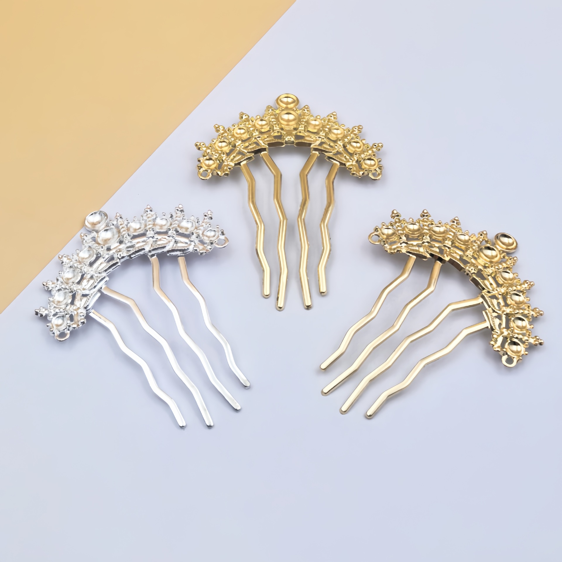 新版合金发梳一体款十里桃花四齿多宝发梳古风发饰饰品材料