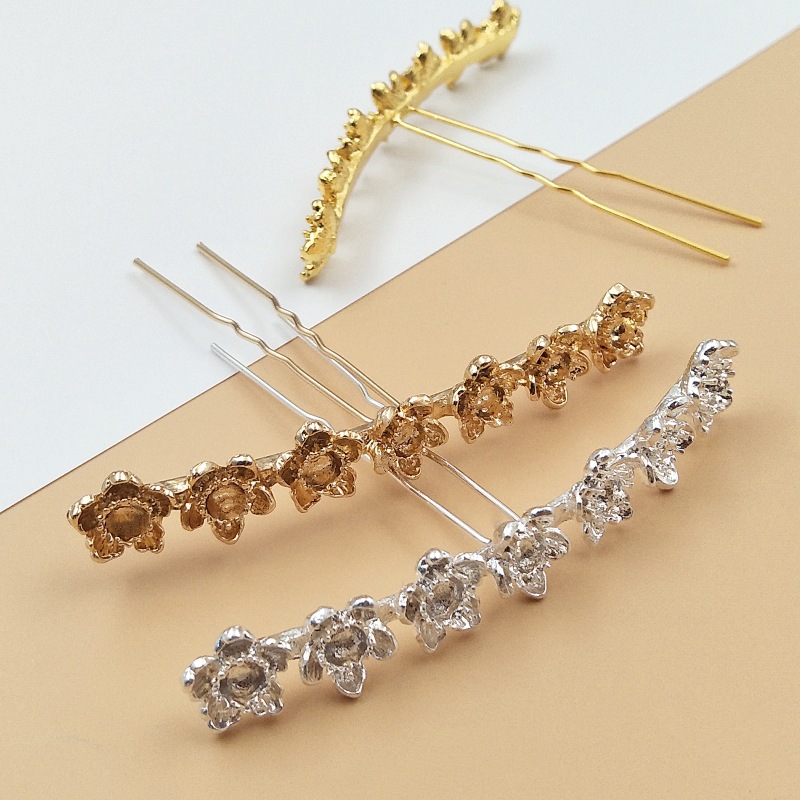 電気泳動高保色DIYアクセサリー古風花嫁ヘアピン頭飾り団扇アクセサリー合金小花U形ヘアピン