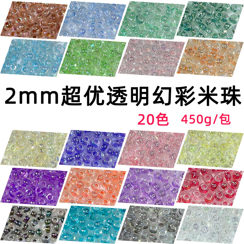 国産超優米珠2mmガラス米珠透明幻染芯米珠DIY手作り漢風古蘇ガラス珠
