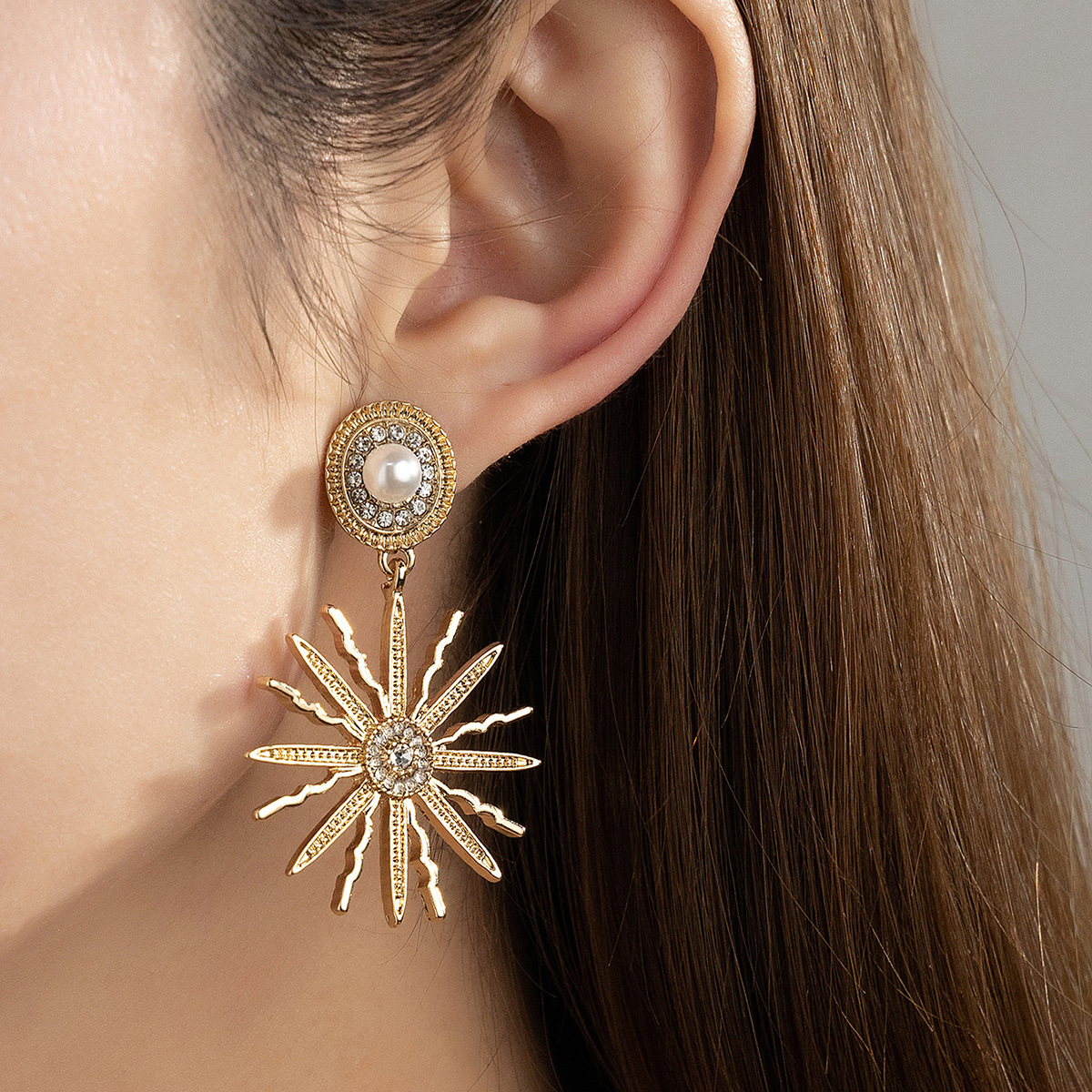 太陽の花の真珠の耳は女性の金属の高級感を挟みます。