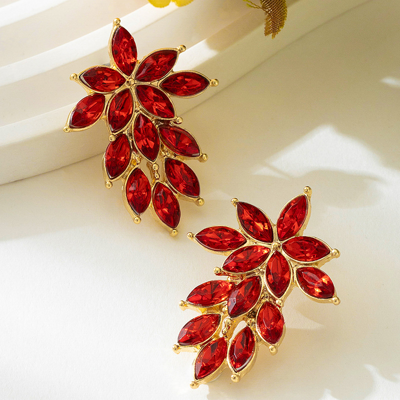 新型欧米風速売ebay花誇張ピアスファッション合金に赤いイヤリングを入れた新年耳飾り