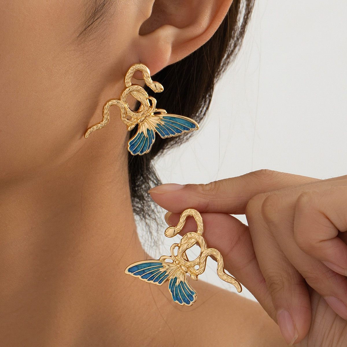 欧米のクロスボーダーの装飾品のファッション的な個性のアイデアの金の蝶の蛇の形のピアスの気質の百合のネットの赤いins風のイヤリング