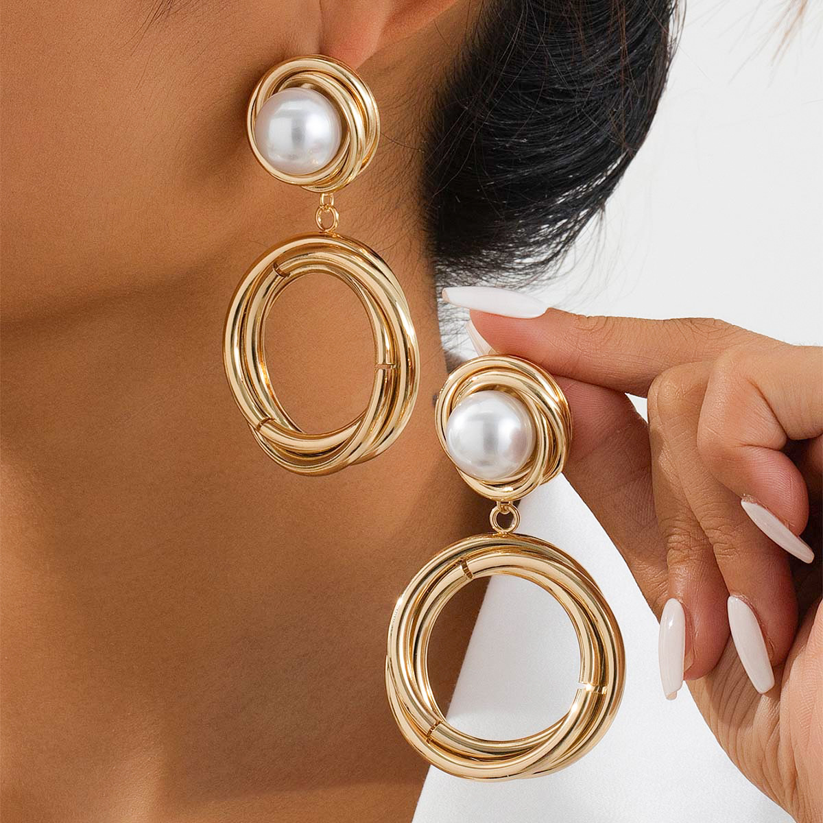 欧米の越境創意の幾何学の四角形は真珠の金属の丸い形のイヤリングの女性の個性の気質をまねて耳の装飾品の潮を巻きます。