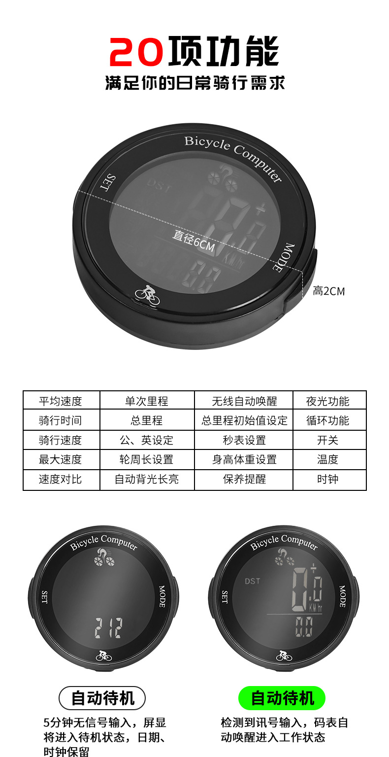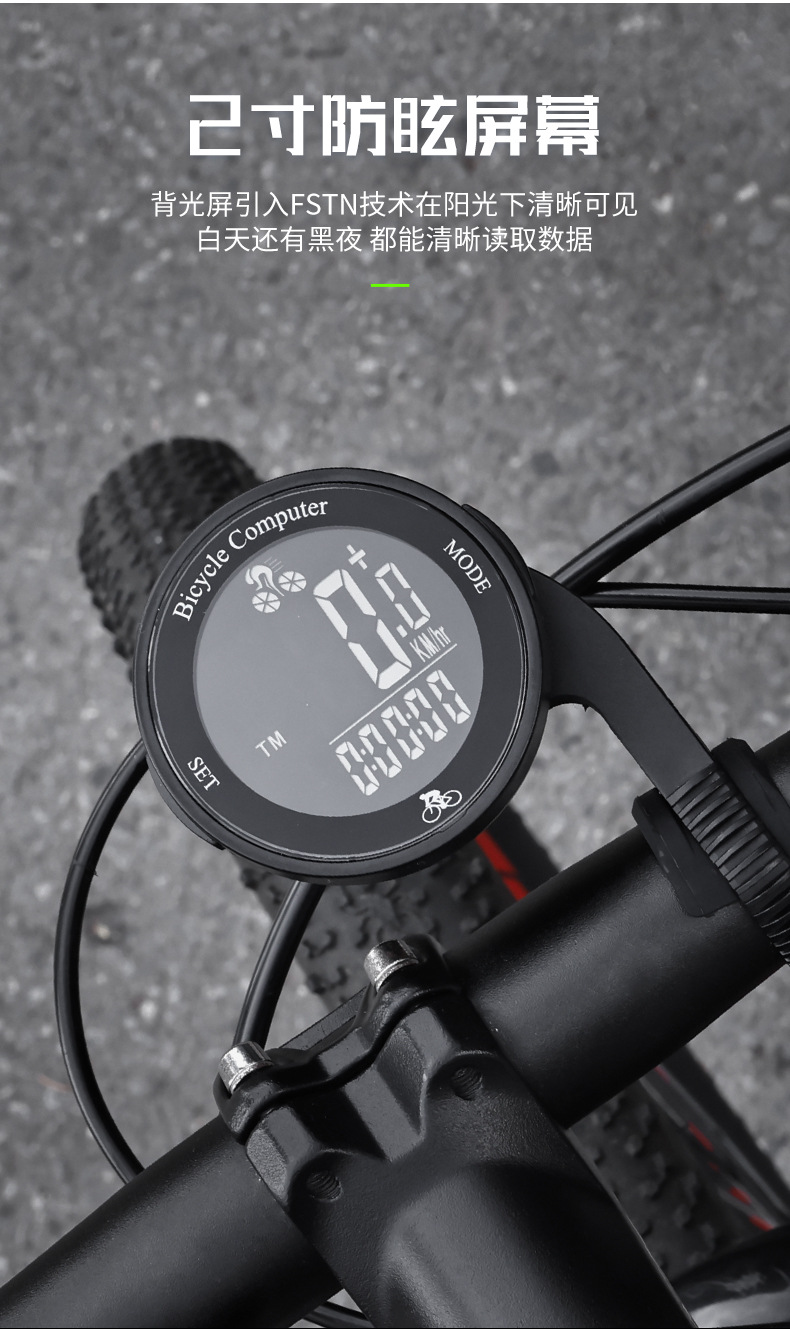 跨速智能圆形大屏码表自行车测速器无线码表防水里程表背光夜光表