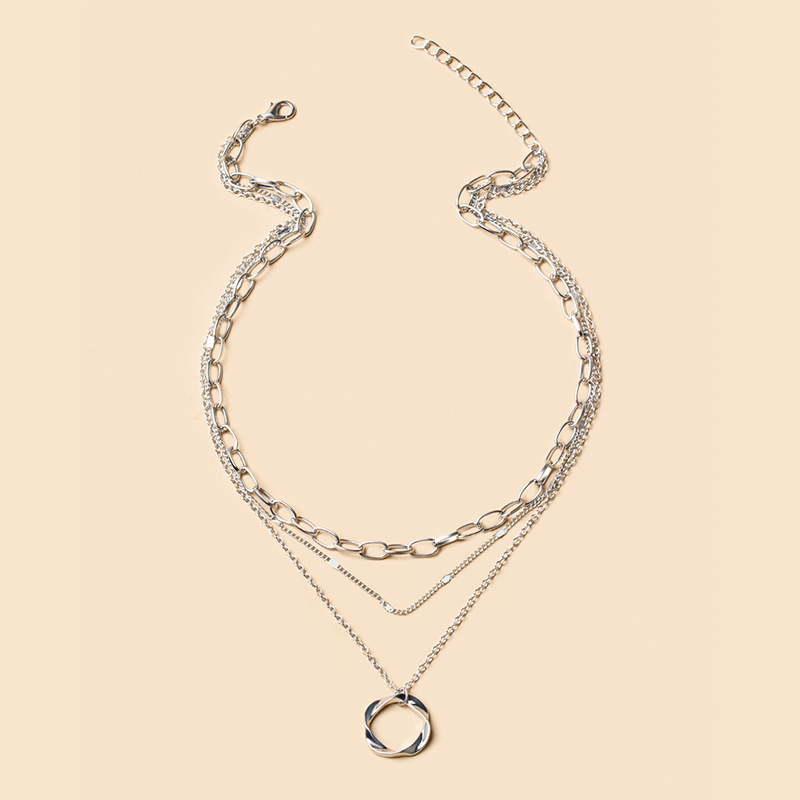 国境を越えた新しい幾何学的なディスクタッセルネックレス合金タッセルネックレスアクセサリー女性の夏のペンダントスタックネックレス