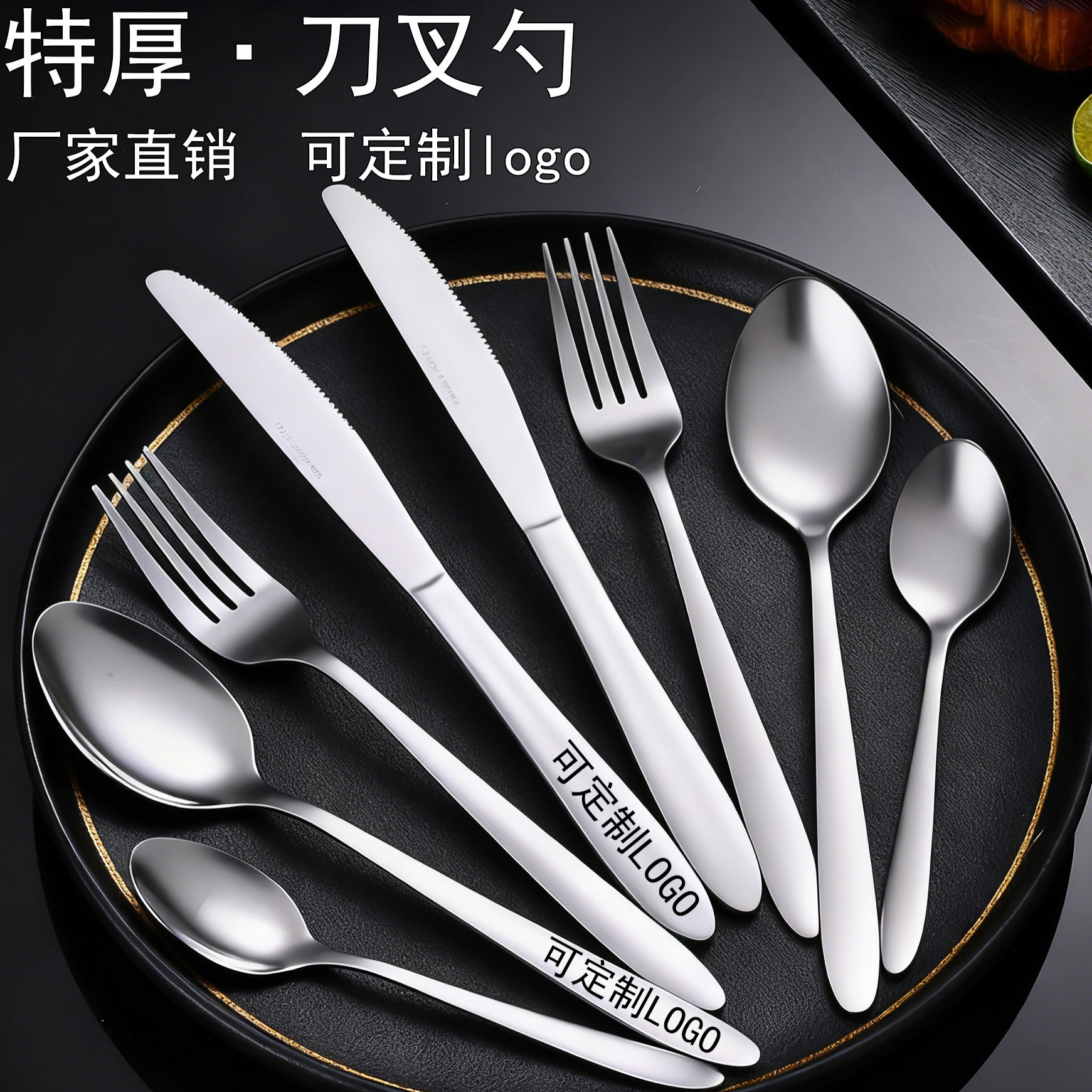 不锈钢刀叉勺加厚餐具家用光柄圆勺尖勺酒店餐刀西餐沙拉水果叉