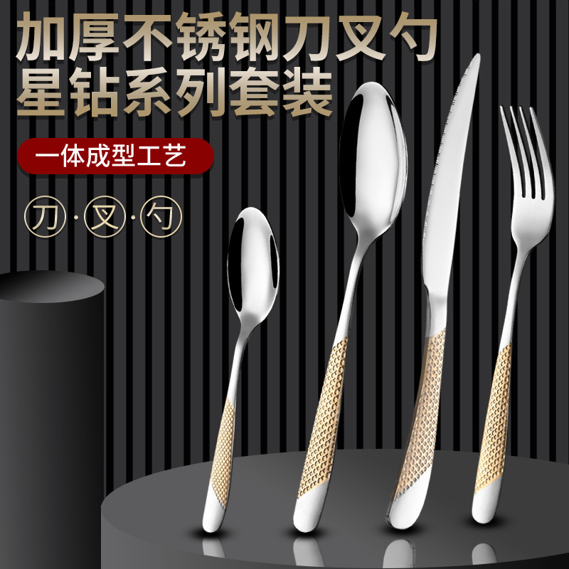 厚いステンレス食器フォークスプーンレトロ洋食ナイフフォークスプーンホテルステーキナイフフォークスプーンセット卸売り