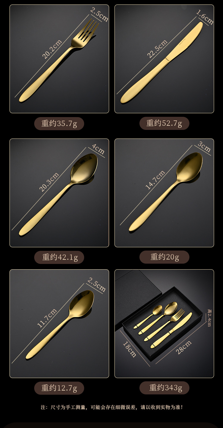 ステンレスナイフフォークスプーンチタン浄化高級レストランステーキナイフデザートスプーンフォーク茶スプーン西レストラン食器6点セット