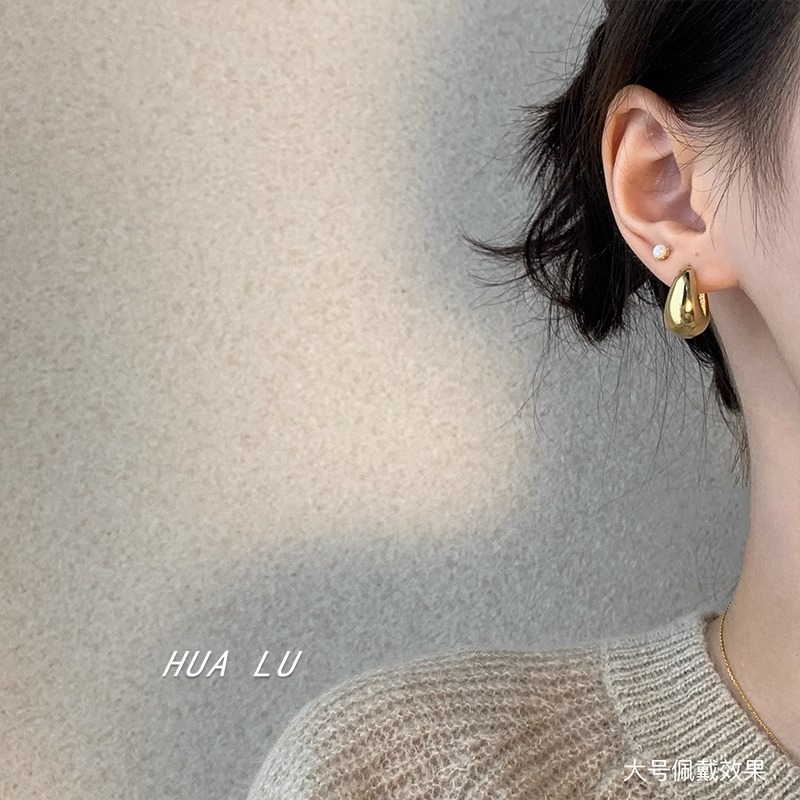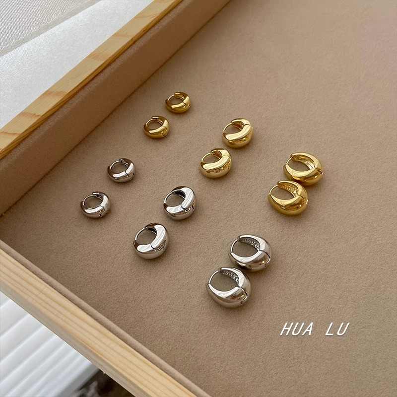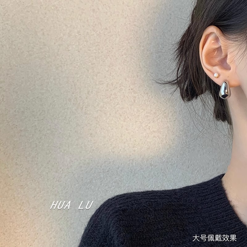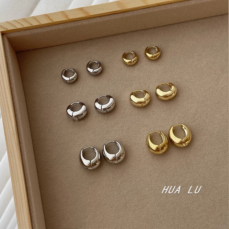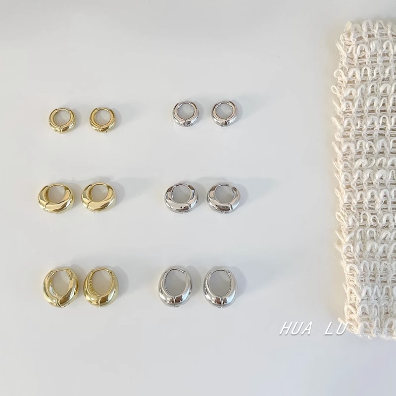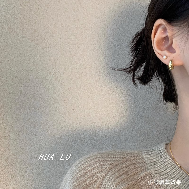Hualu-無地の耳のボタンの小さい太った切り株の経典の百合の韓系のinsの博主の同じ金と銀のイヤリング