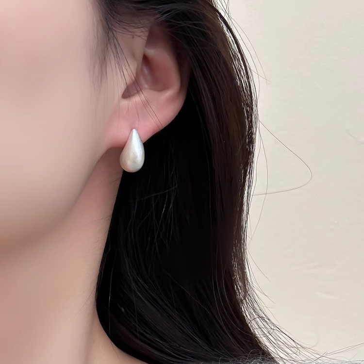 S925銀針小衆デザイン金属伸糸小水滴豆ピアス高級感流行イヤリングショートタイプ
