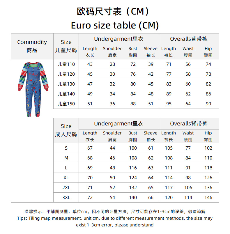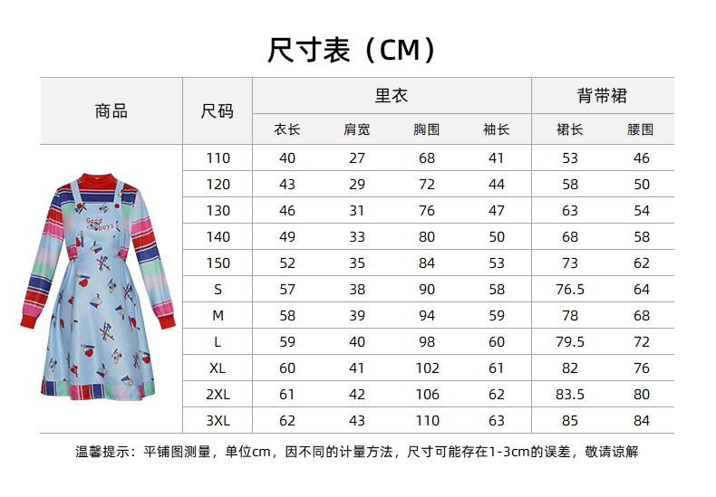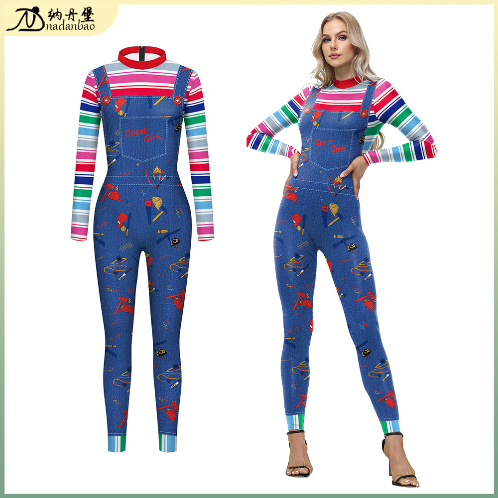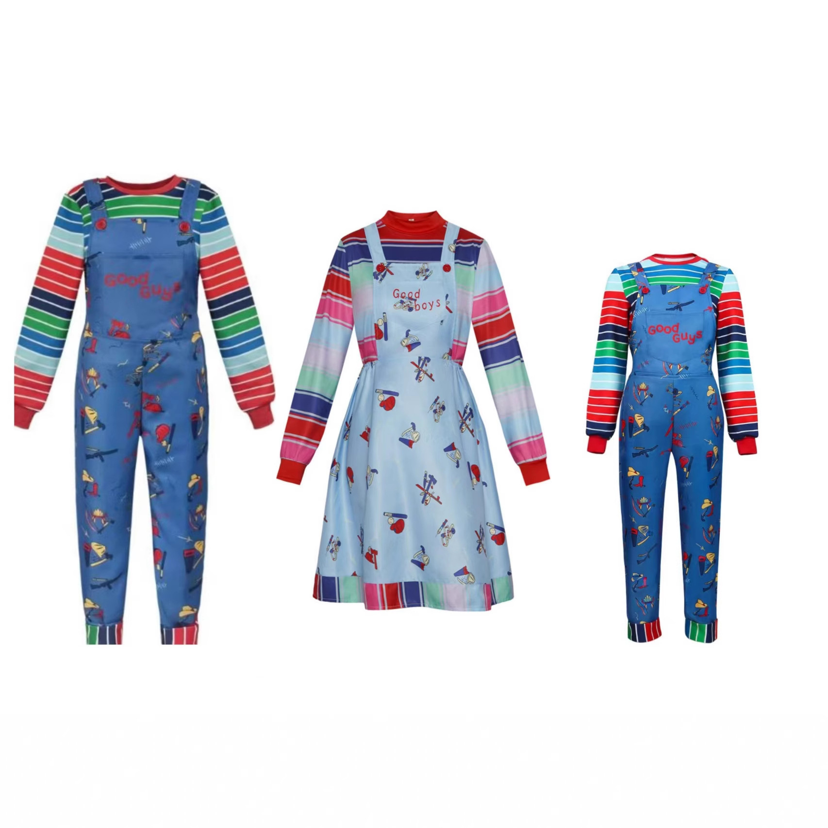 万圣节鬼娃恰吉第二季儿童成人套装背带裤,背带裙cosplay表演服
