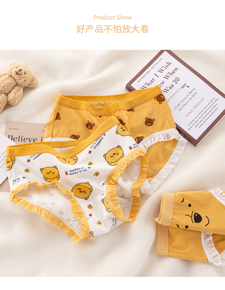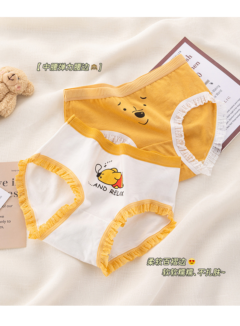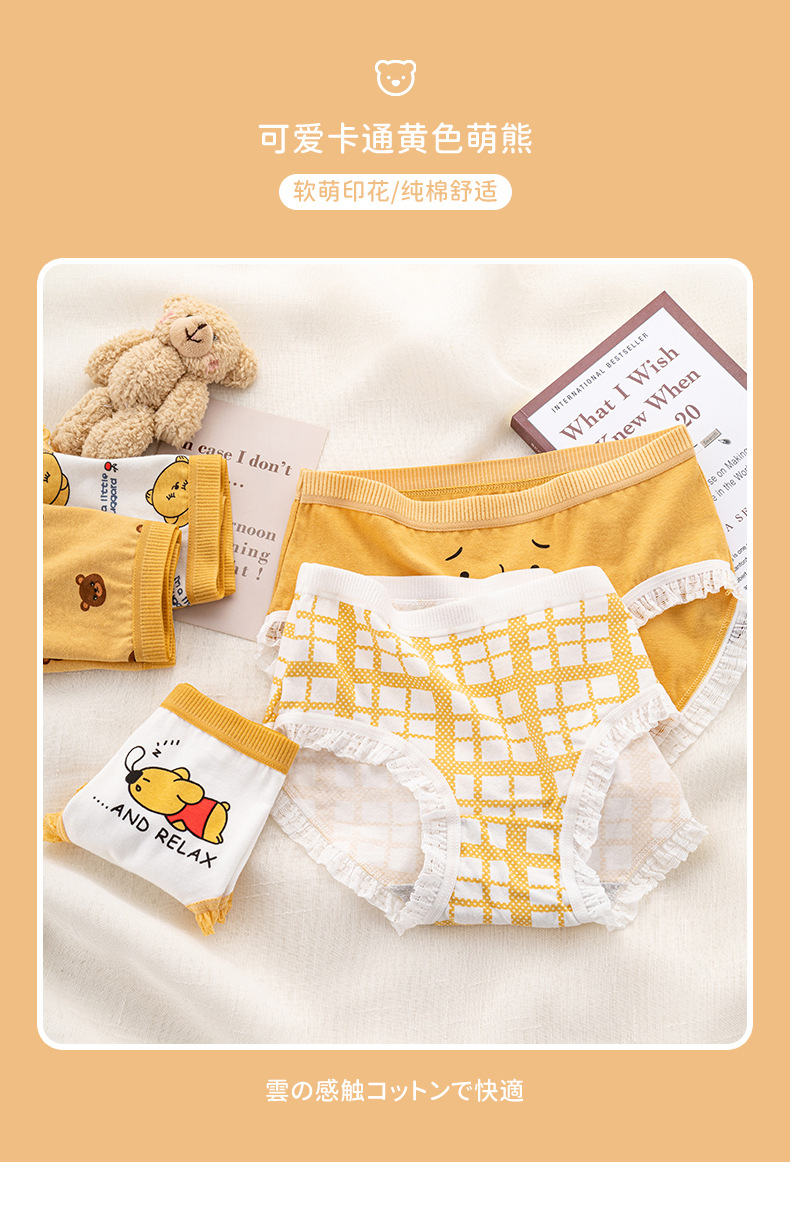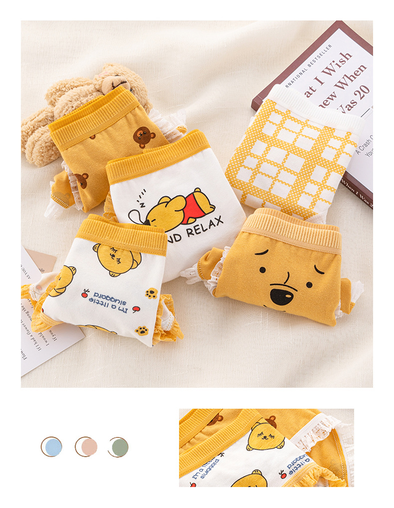 かわいいアニメの熊のプリントの下着の純綿の股のレースの辺は跡がありません。