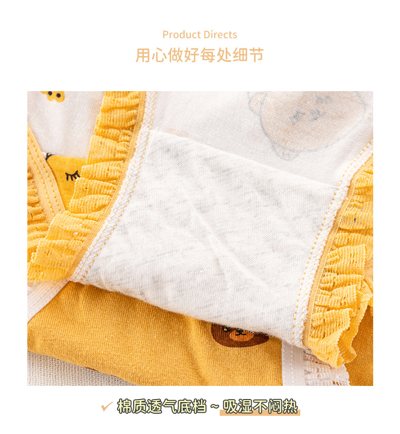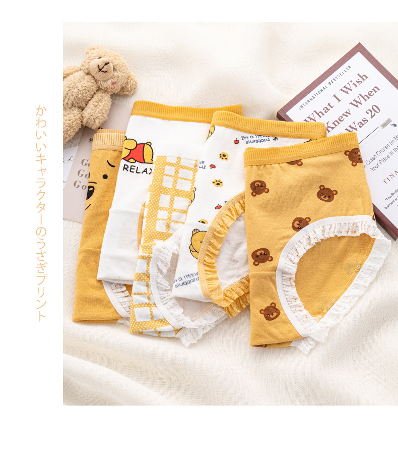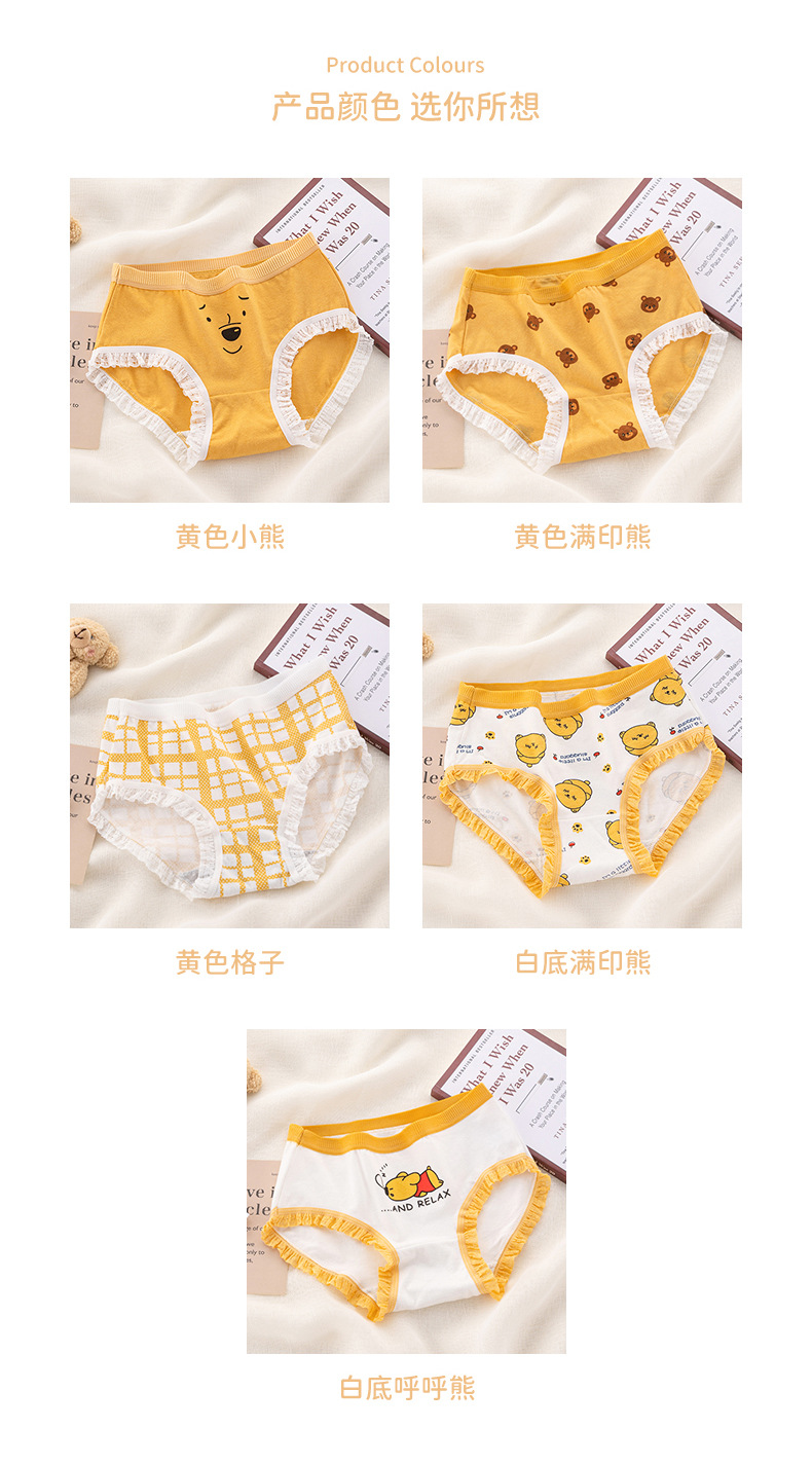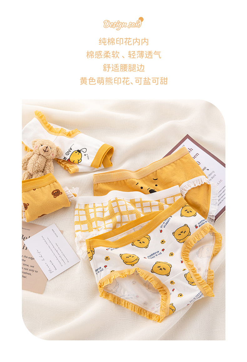 かわいいアニメの熊のプリントの下着の純綿の股のレースの辺は跡がありません。