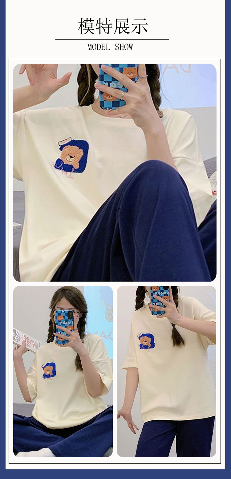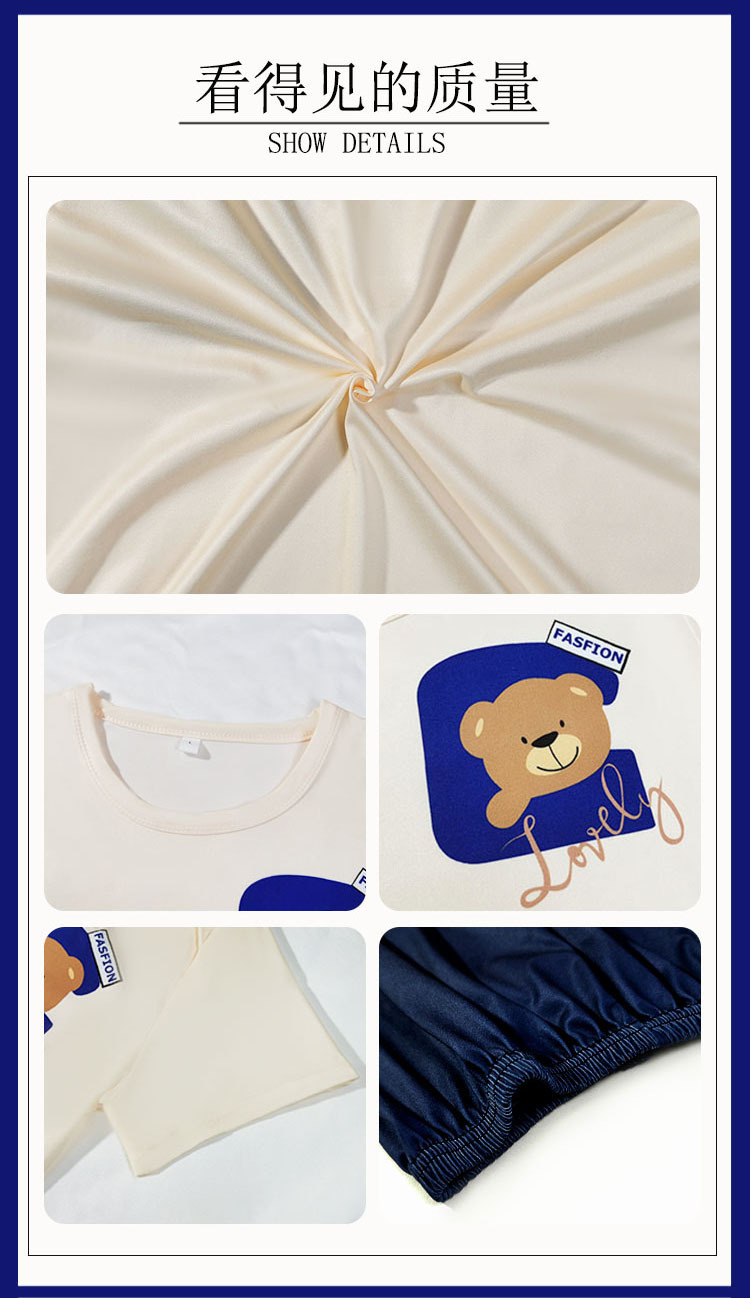 アーモンド色の熊の日系パジャマの女性の新型夏は綿の半袖のズボンのかわいいアニメのゆったりした部屋の服のスーツをまねます。