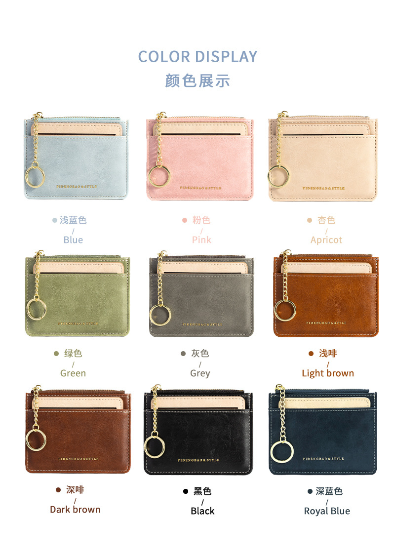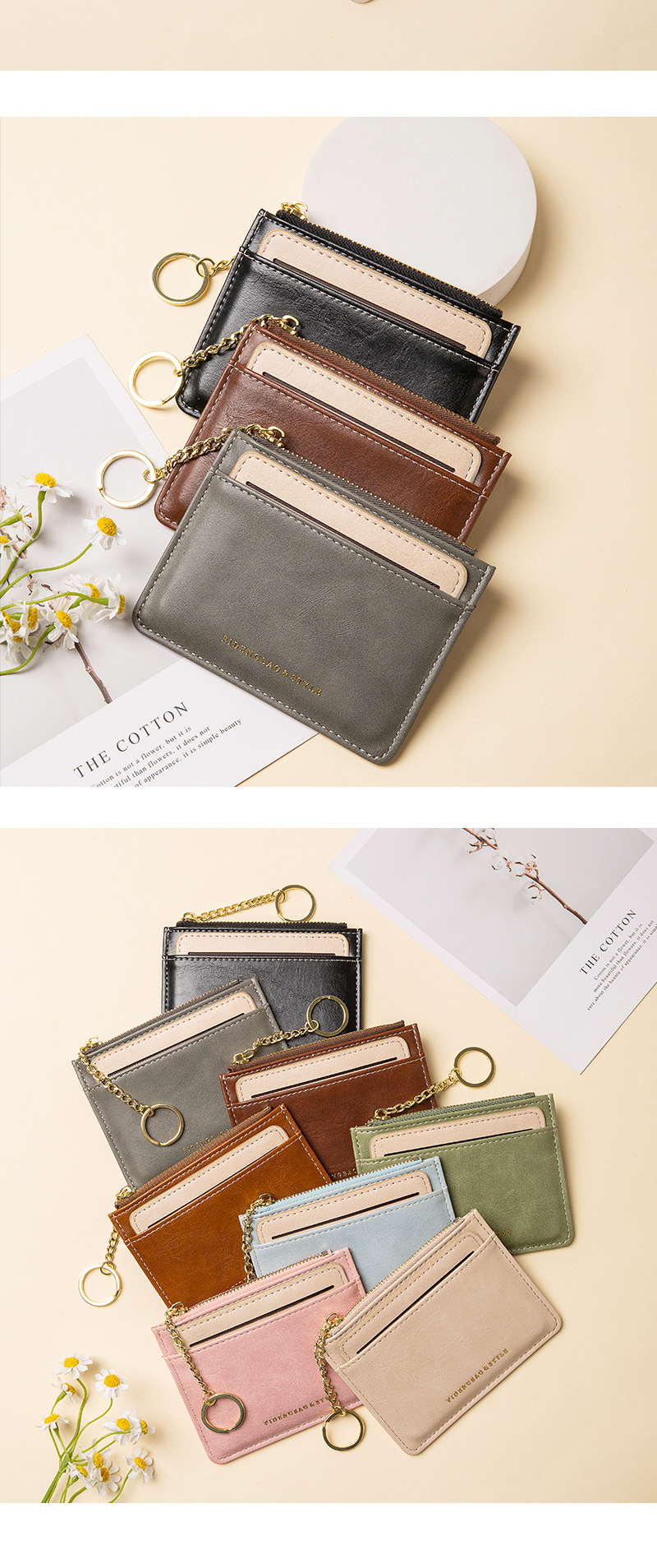 2025新款拉链女士卡包PU多卡位迷你小包钥匙扣门禁薄款卡套