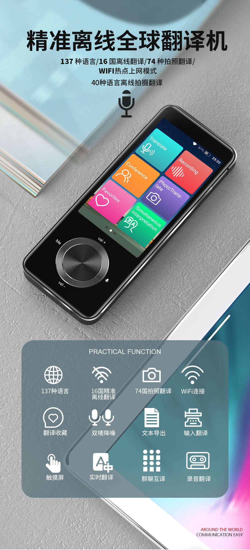 スマート音声翻訳機138言語オフライン翻訳写真撮影録音会話練習同時通訳翻訳機