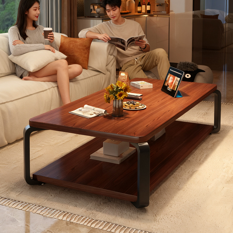 中古风茶几小户型客厅家用双层小桌子简易出租屋简约方形沙发茶桌