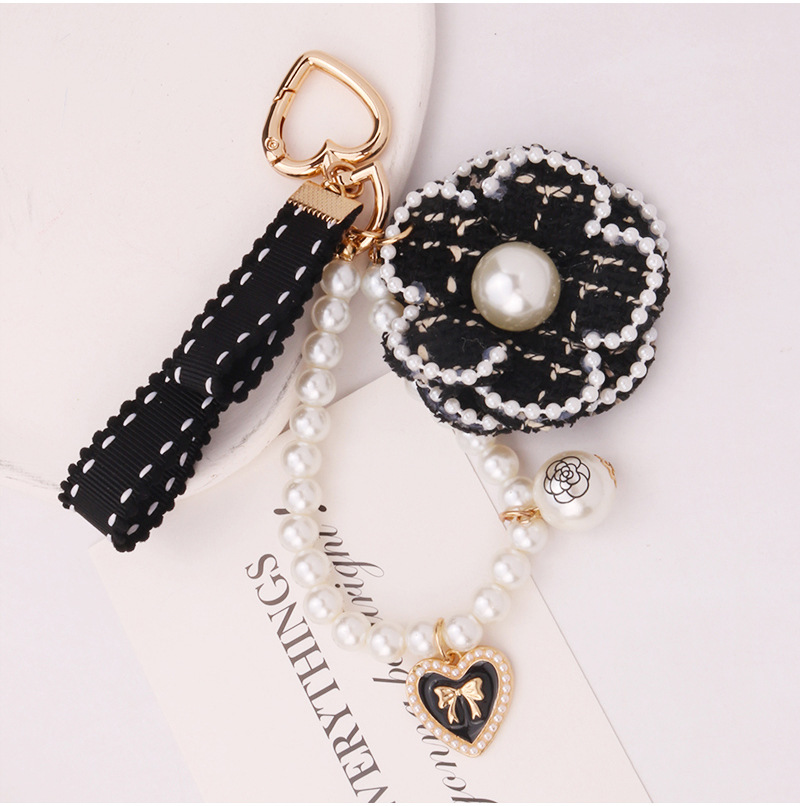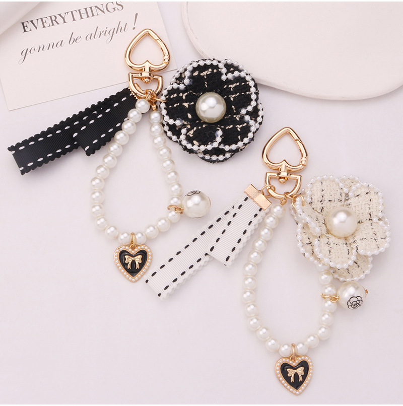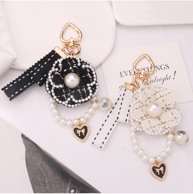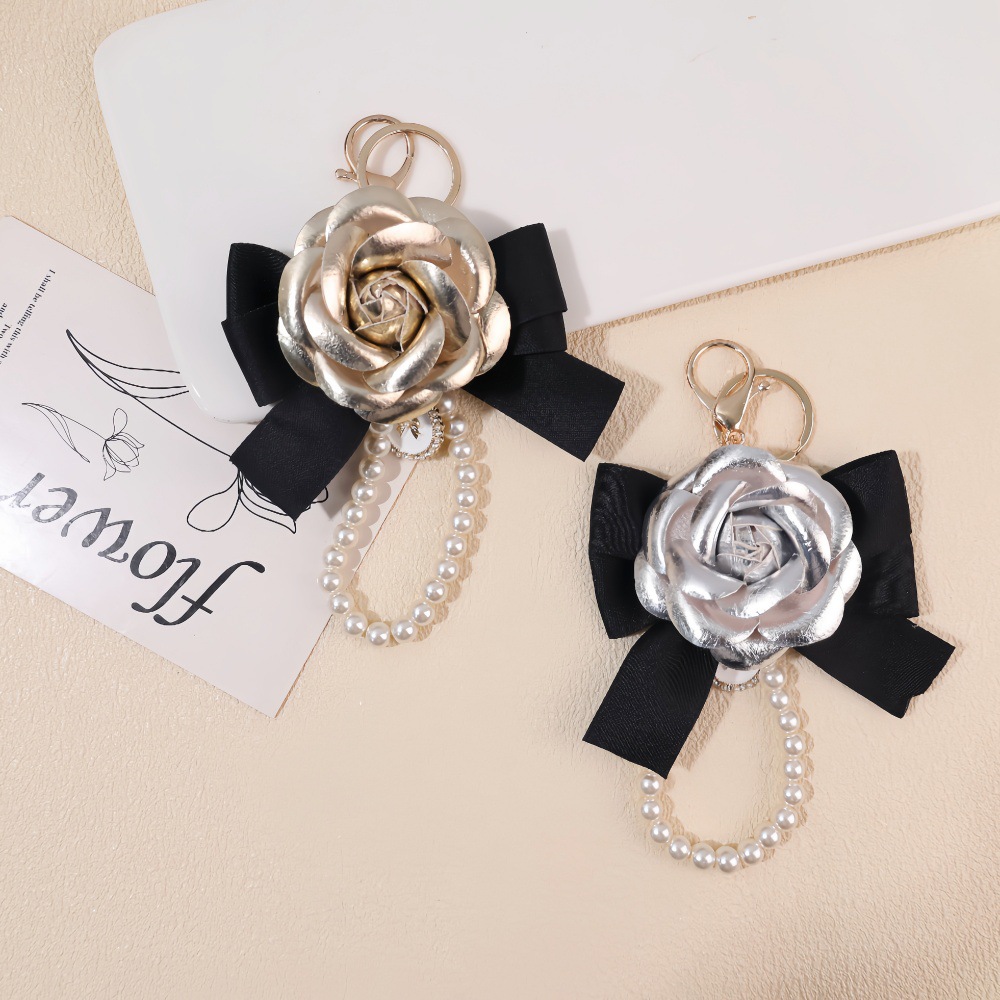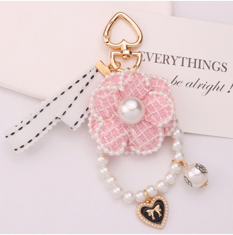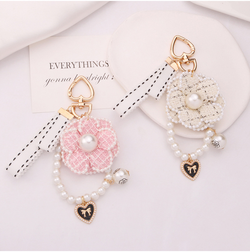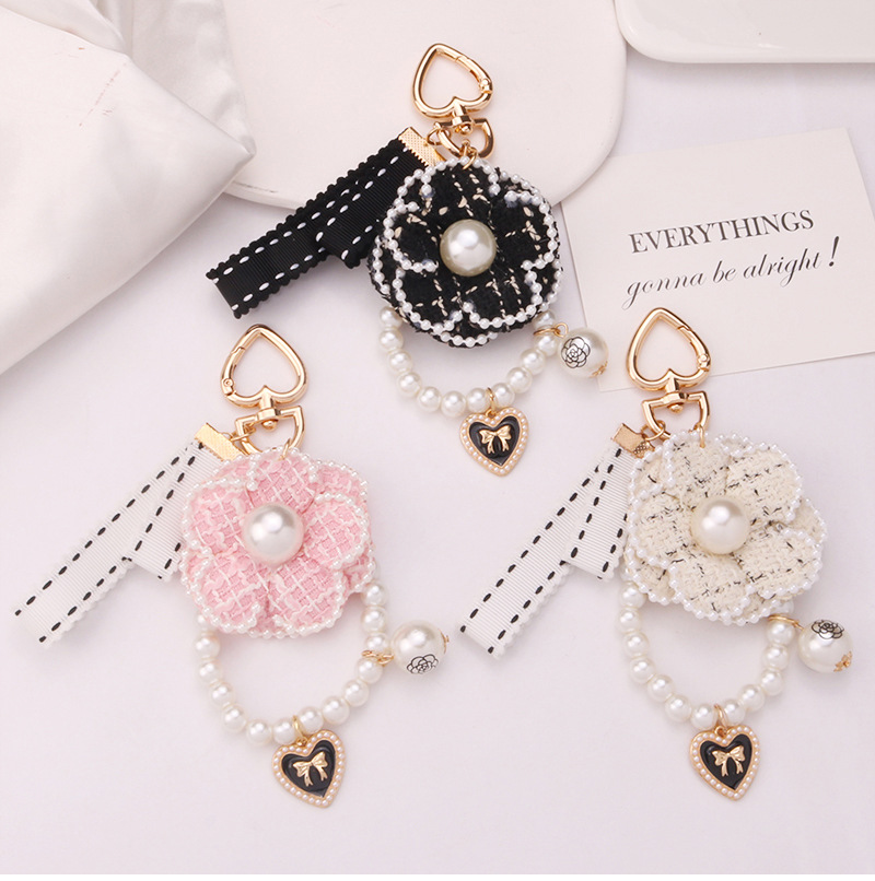 韓国版小香風ツバキの真珠のチェーンの蝶結びの自動車のキーホルダーのカバンの装飾のペンダントの小さい贈り物の卸売り