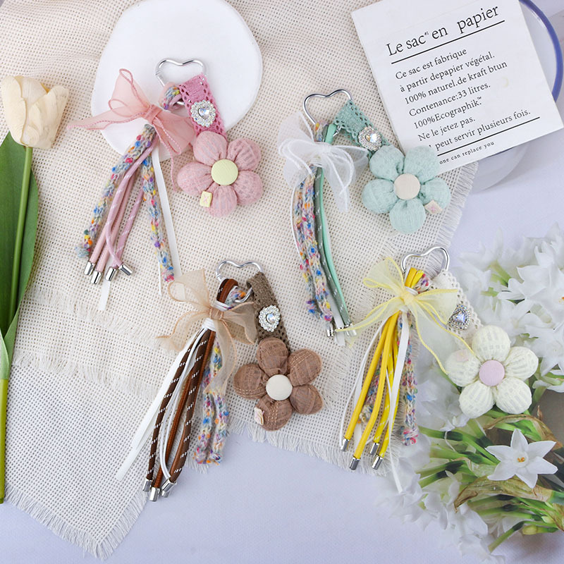 創意布芸花iu風手作りリボン薄紗甘美蝶結びキーホルダーストラップ