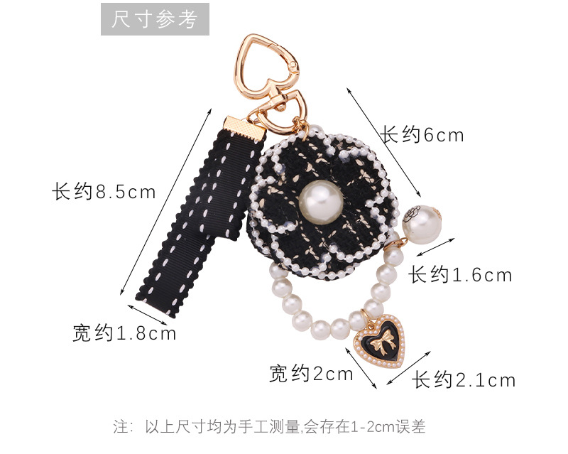 新款小香风格子蝴蝶结珍珠钥匙扣合金挂件布艺挂件耳机套包包挂饰