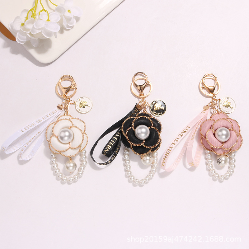 パールストリング椿車のキーホルダー金属かわいい女性バッグペンダントキーチェーンリングクリエイティブギフト