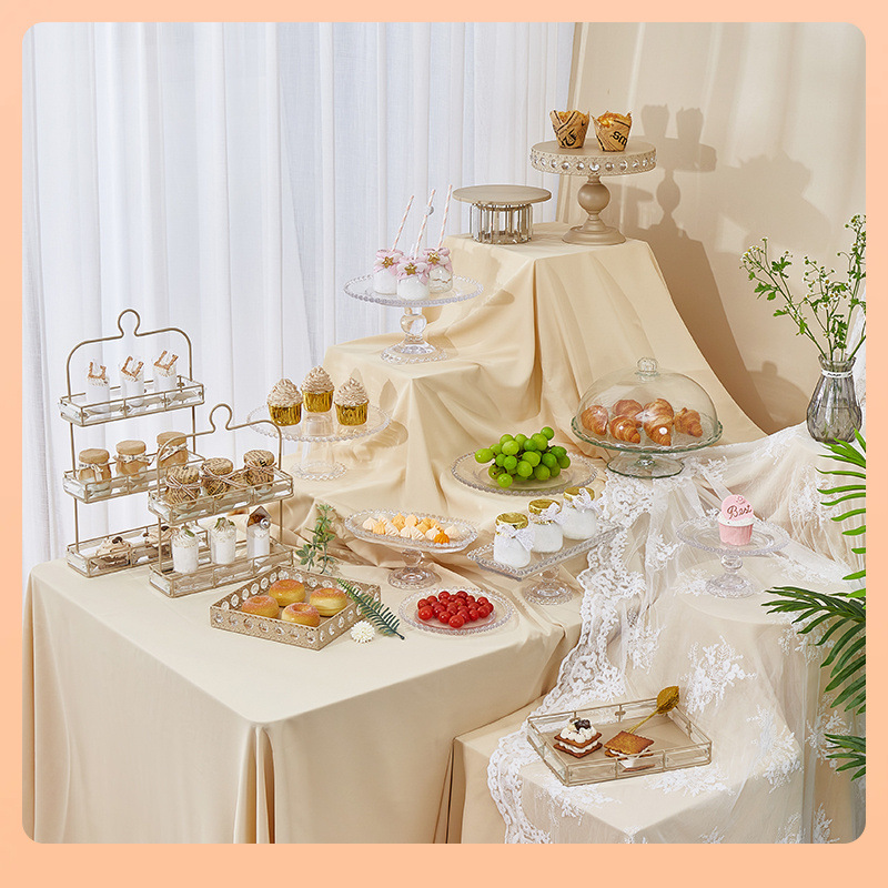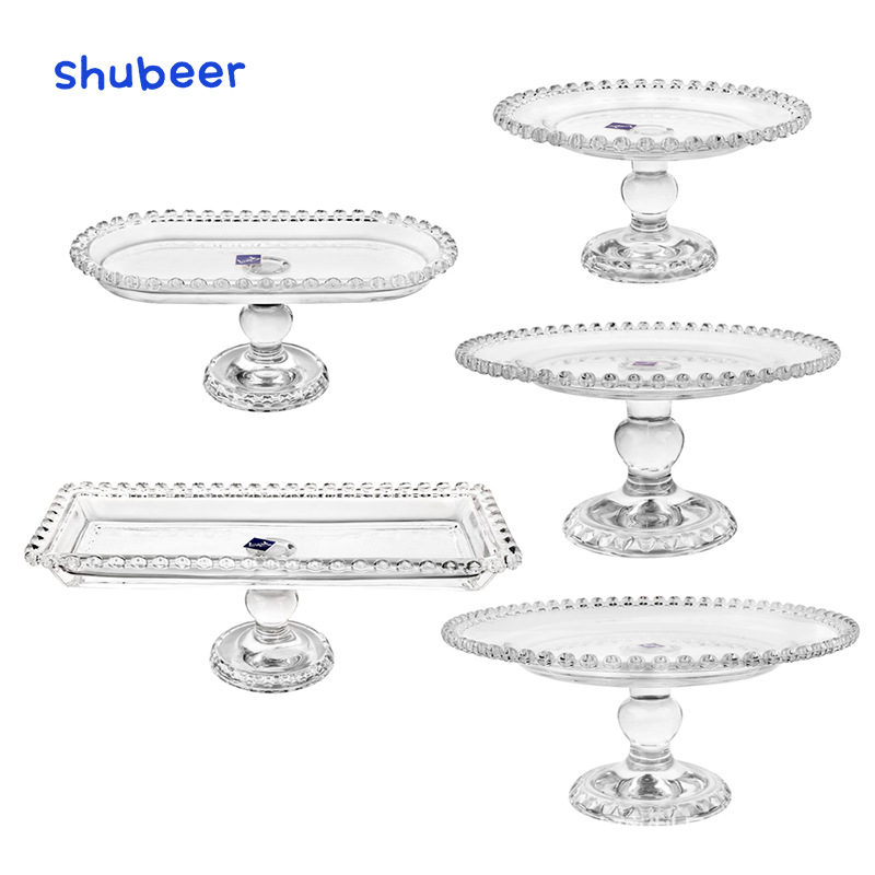 韓国スタイルの透明ガラスビーズプレート、ホームペストリーフルーツプレート、背の高いデザートプレート、ディスプレイオーナメントプレート