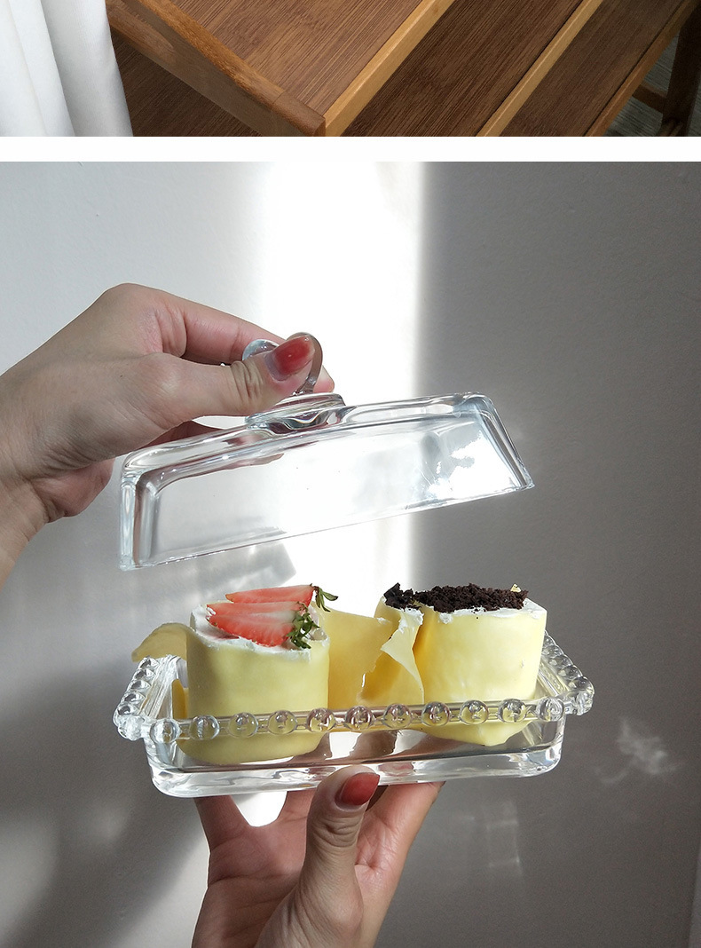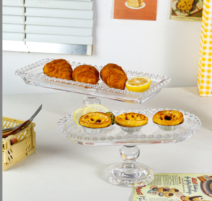 Ins愛珠点高脚ガラス果盤菓子盤長方形菓子スイーツ食品トレイ果物皿