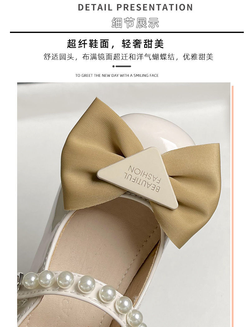 女の子のシングルシューズプリンセスシューズ2025春と秋の新しい子供用ソフトソールシューズ夏のベビーリボンパールレザーシューズ
