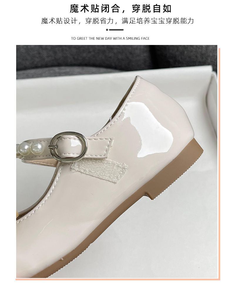女の子の靴春秋2025新型の白い真珠の女の子の赤ちゃんの柔らかい底の洋気の子供の豆の王女の靴