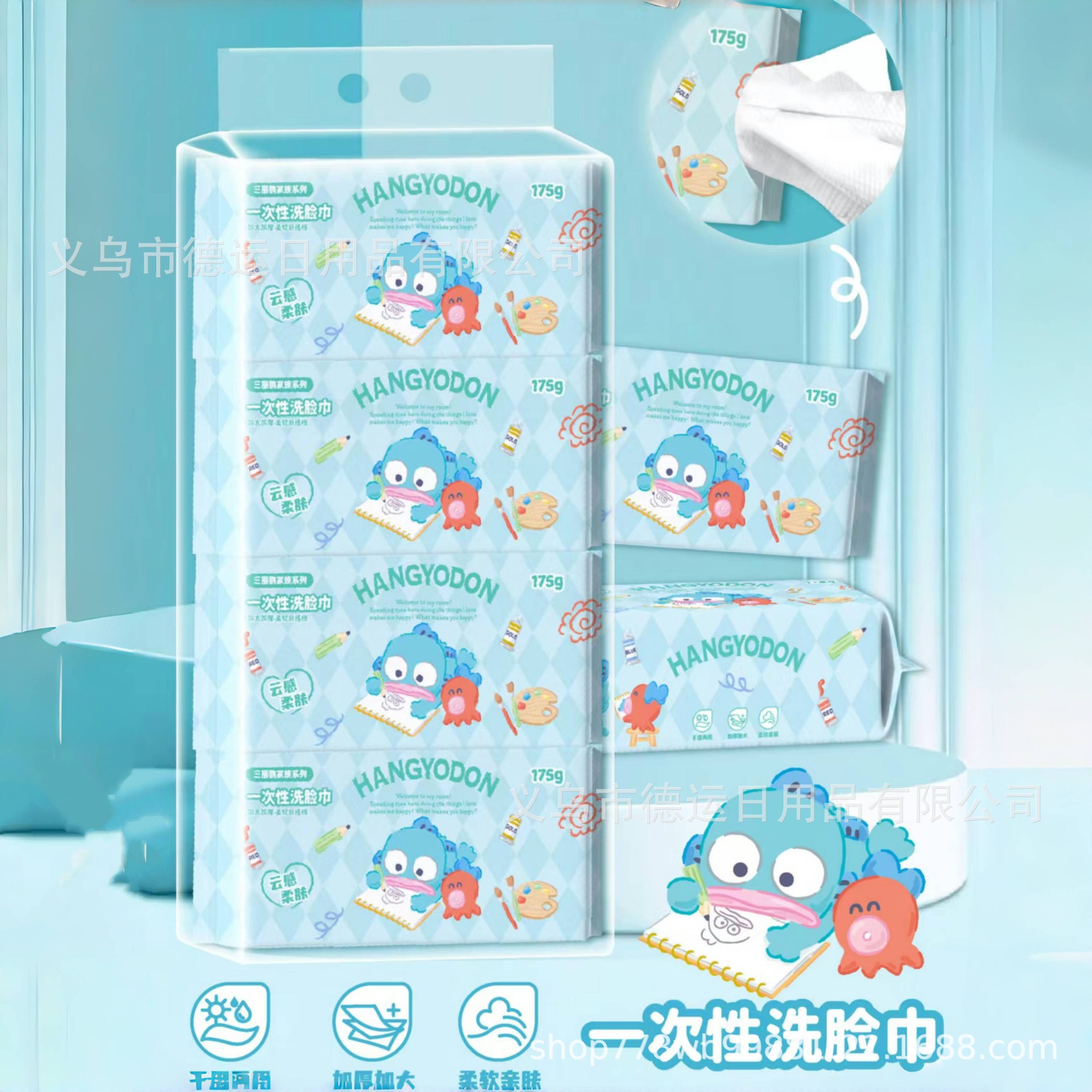 三丽鸥正版授权洗脸巾丑鱼加厚加大抽取式擦脸巾珍珠纹棉柔巾批发