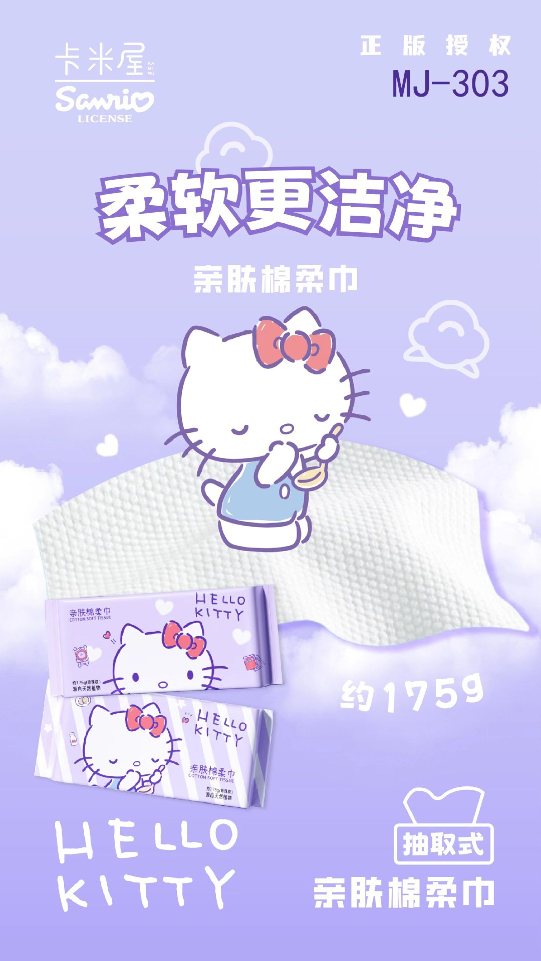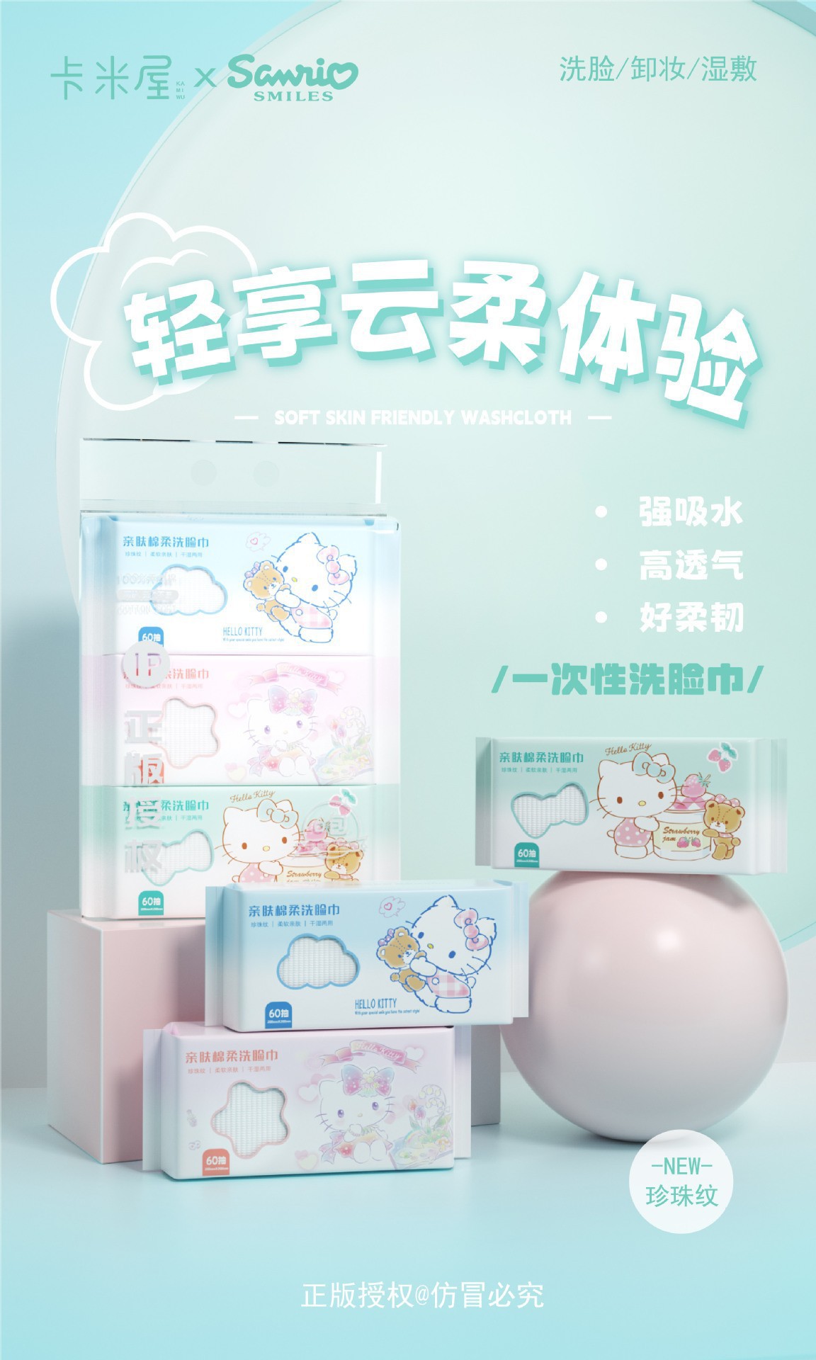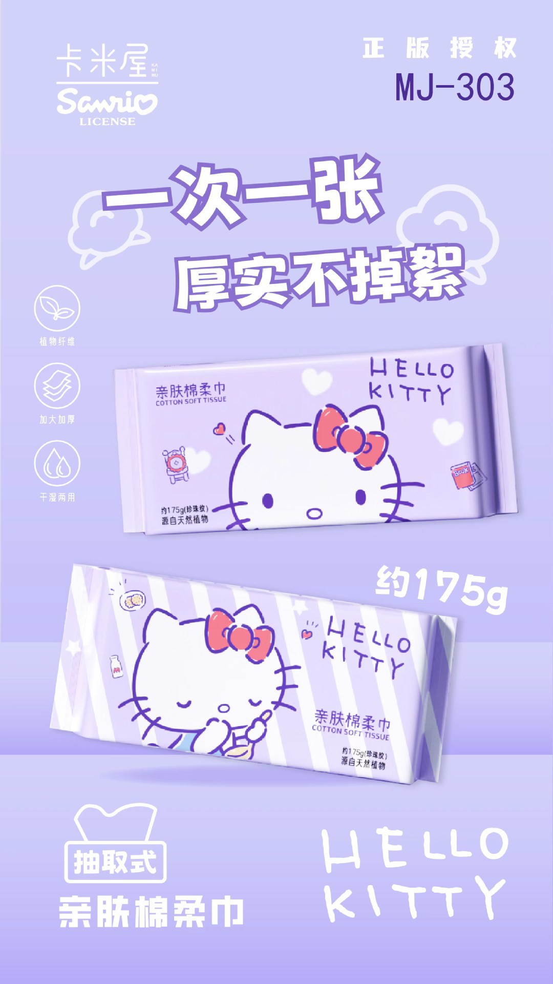 一次性加厚棉柔巾三丽鸥Kitty洗脸巾珍珠纹干湿两用美容抽纸批发