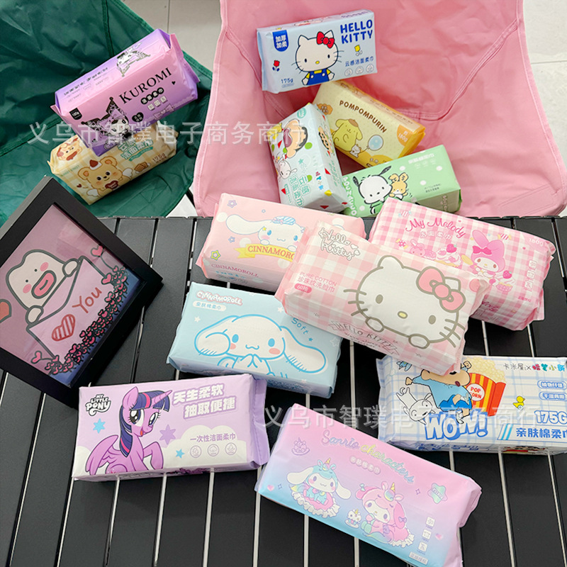 サンリオ綿の柔らかいタオルは使い捨ての抽出式の洗顔タオルを厚くして、乾湿両用の柔らかい肌の洗顔タオルの卸売りを大きくします。