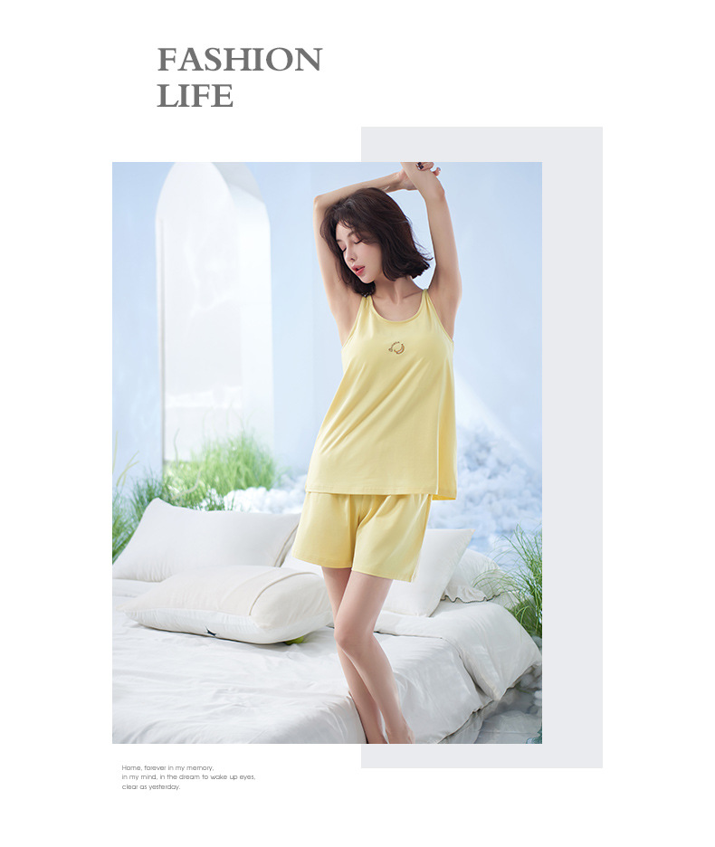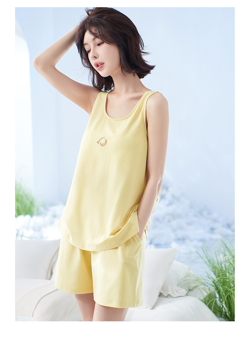 軒の美しい夏の新商品の部屋の服の頭のベストの半ズボンのスーツの涼しさの純綿の純色のパジャマの女性は胸のパッドを持ちます。