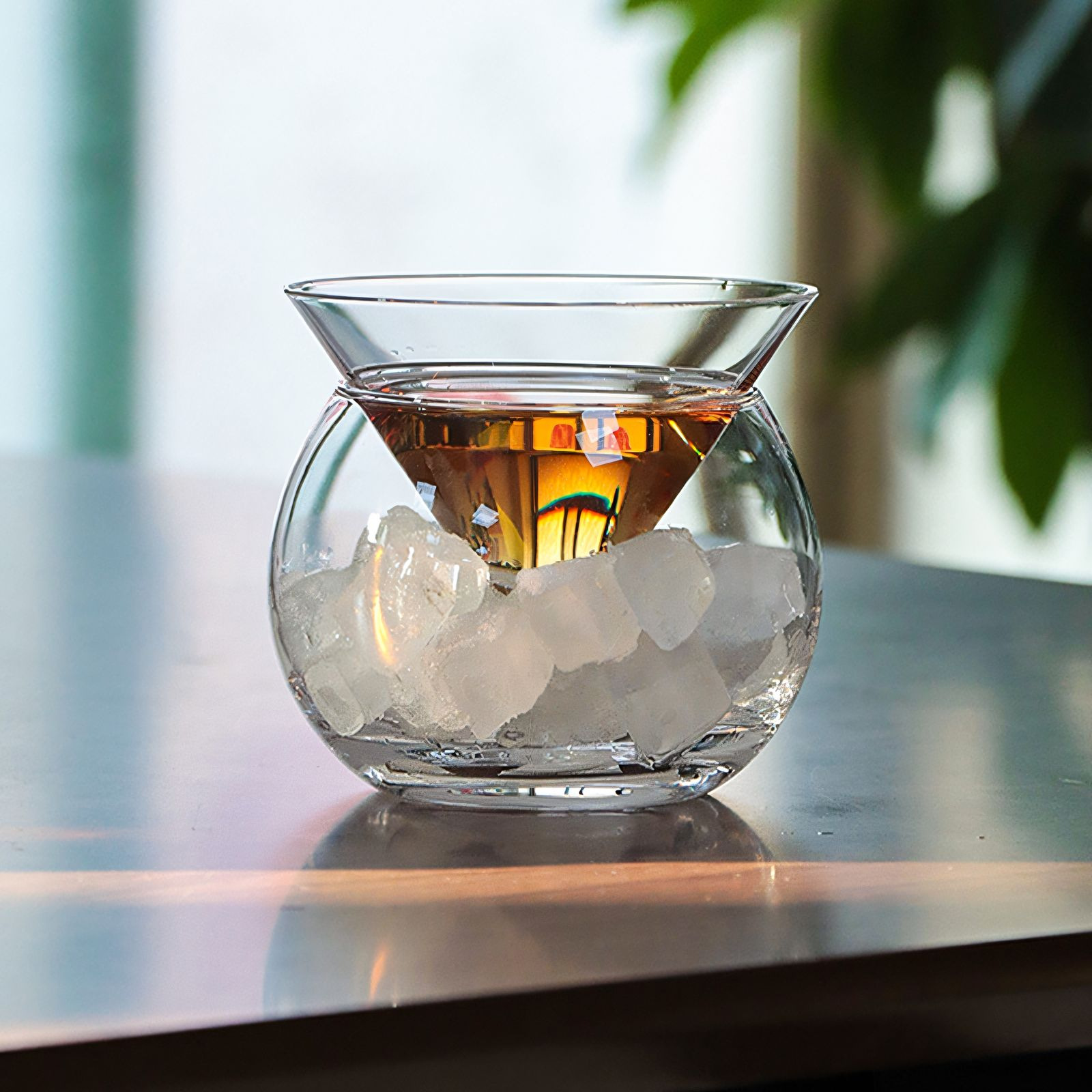 日本式二層清酒氷酒器分離隔水カーリングバー調酒カクテルカップ冷却器泡カーリング