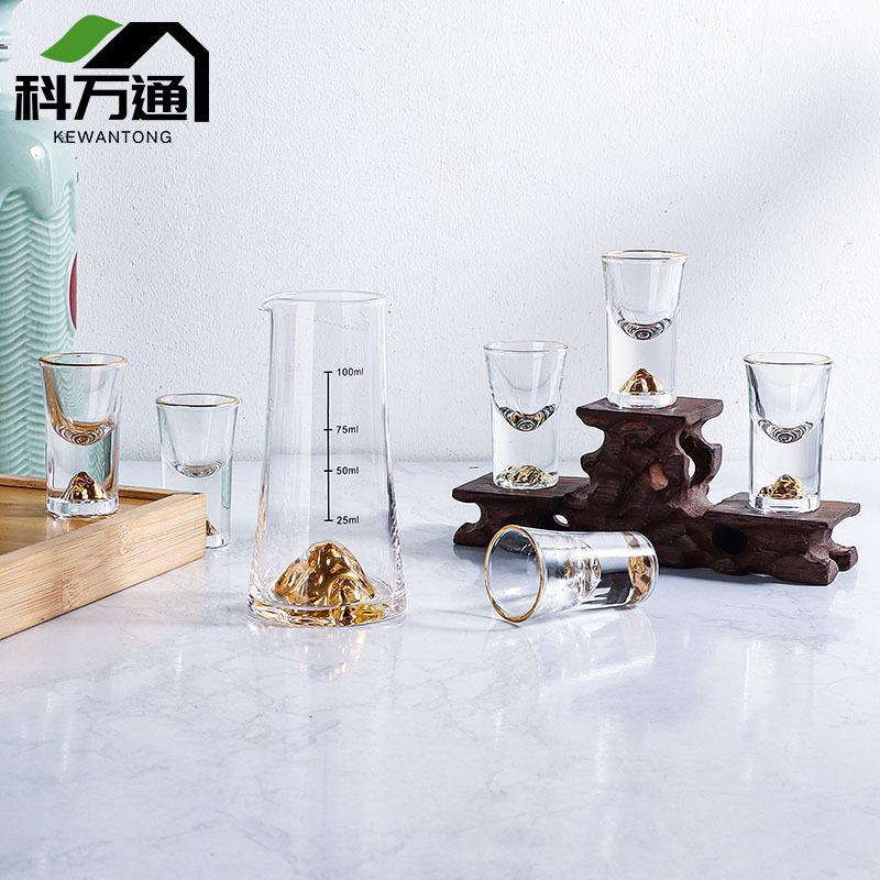 新中国式高級軽豪華白酒分酒器江山水晶ガラス分酒壺金山金底白杯セット