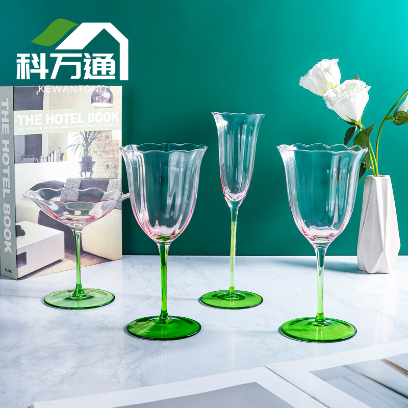 カラーシャンパンカップ花カクテルカップ花びらデザイン新型国境を越えたグラス宴会レストランレトロな高足カップ