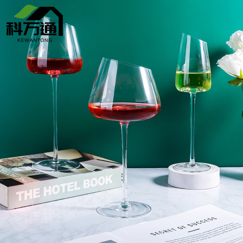 斜め口の凹底ワイングラス 家庭用クリスタルガラス ヨーロピアンスタイルのハイグラス シャンパングラス ワイングラス 2個入りギフトボックス