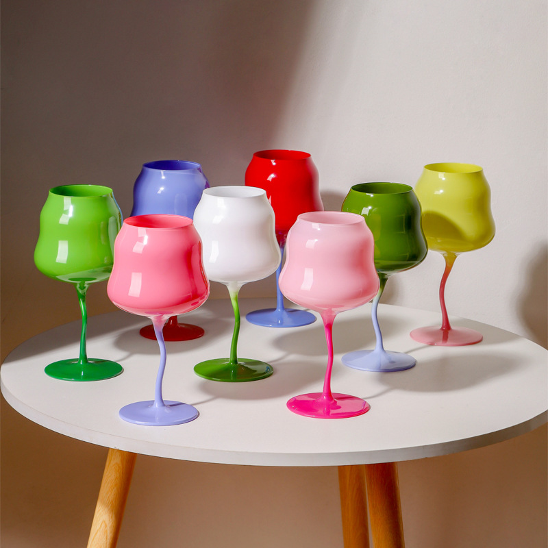 クリエイティブかわいい少女心ガラス杯マカロン色高颜値高足杯クリスマス水晶ガラスワイングラス