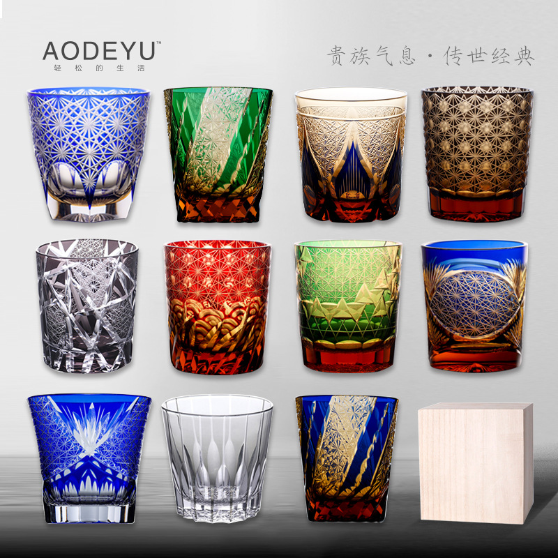 日本式江戸切子水晶グラスハイエンド手作り彫刻水晶カップブルーデイジー星芒歳月洋杯