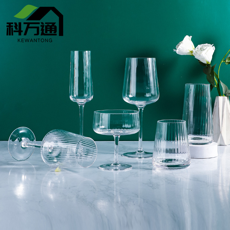 ヨーロピアンスタイルのシンプルな透明ストライプゴブレットクロスボーダースレッドワインレッドワイングラス中世パーティーホームカクテルグラス