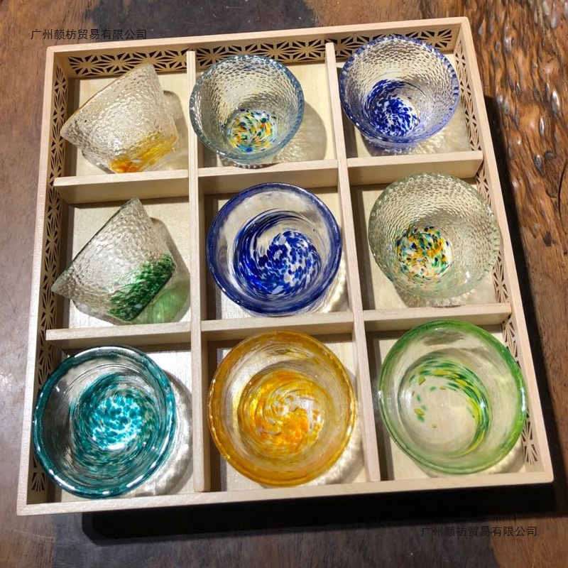 日式创意餐具 彩色琉璃杯多款清酒杯冰酒杯果酒桃花酒杯玻璃