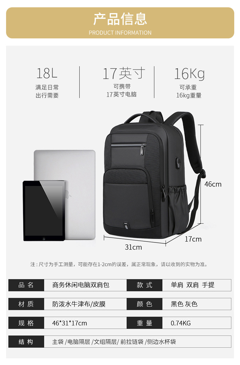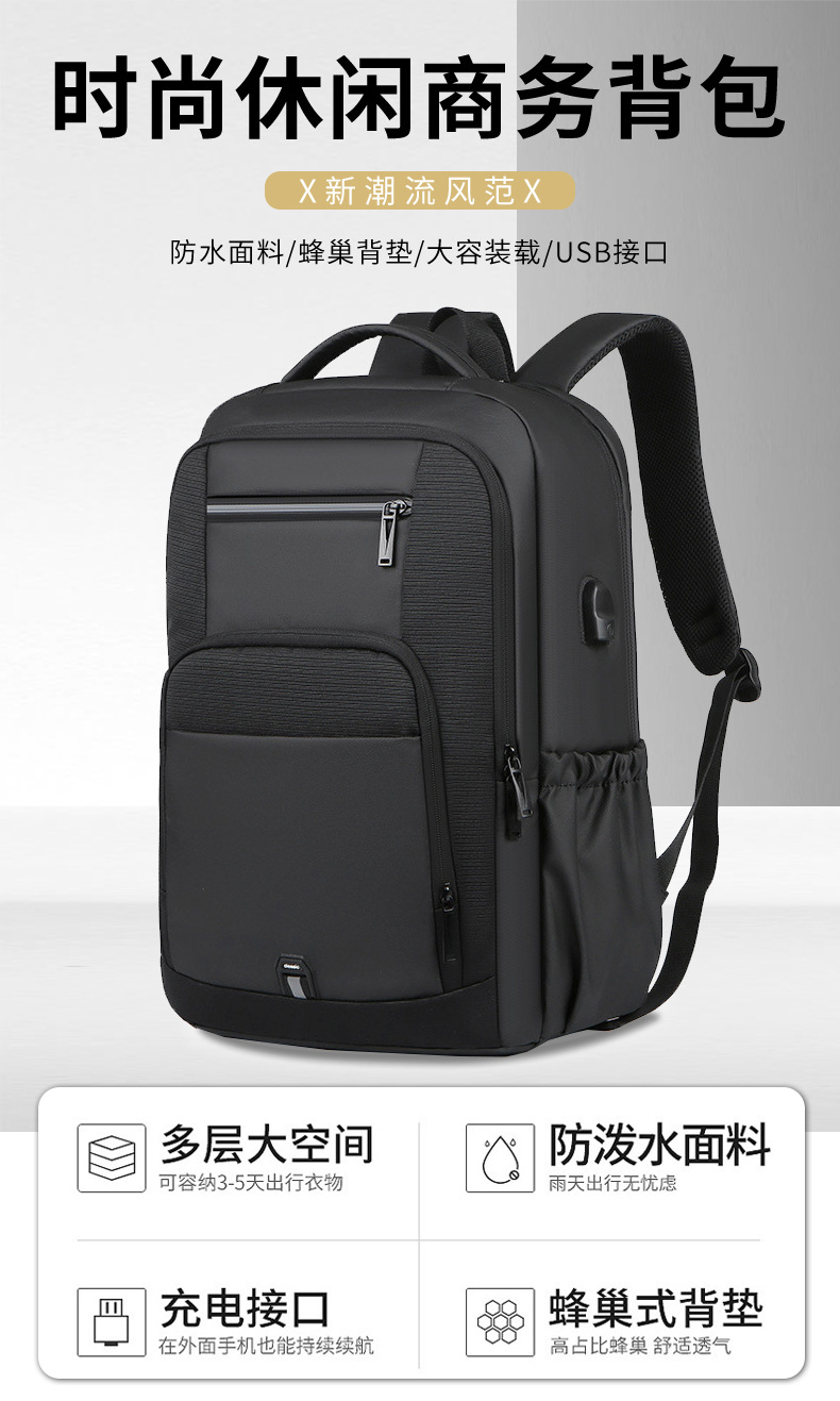 新款大容量商务休闲旅行双肩包男士休闲双肩背包百搭通勤电脑背包